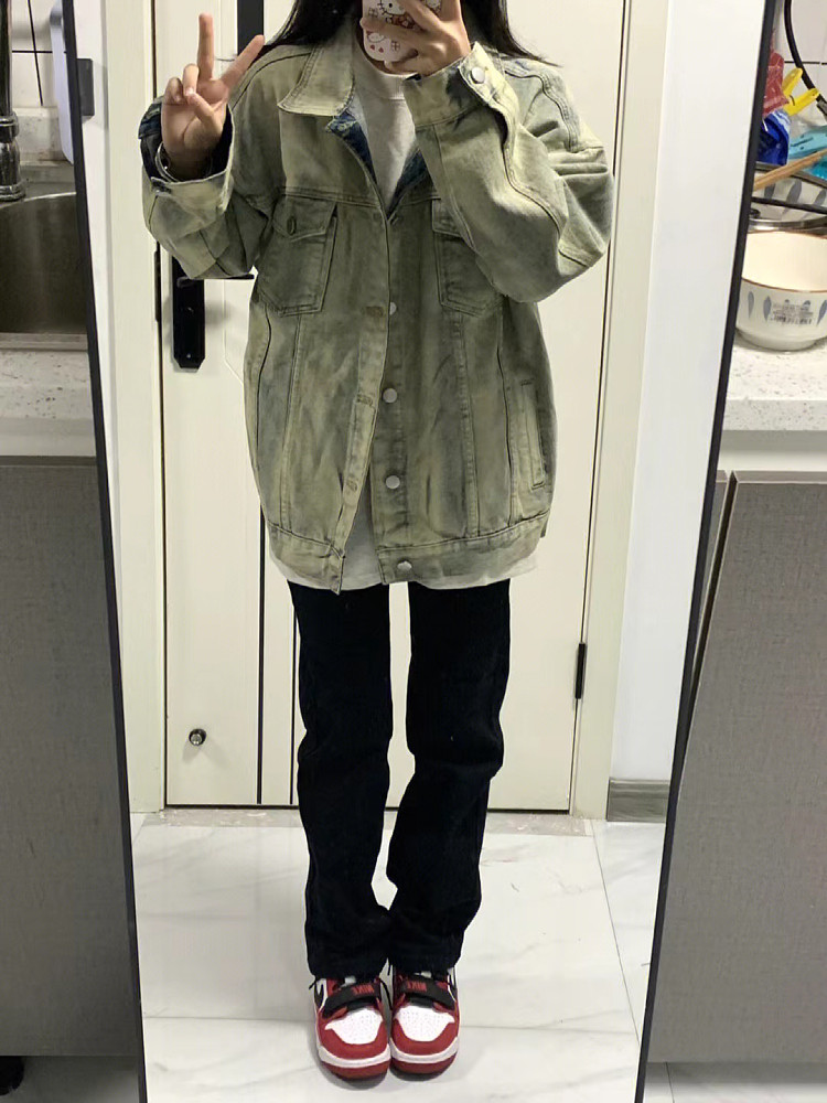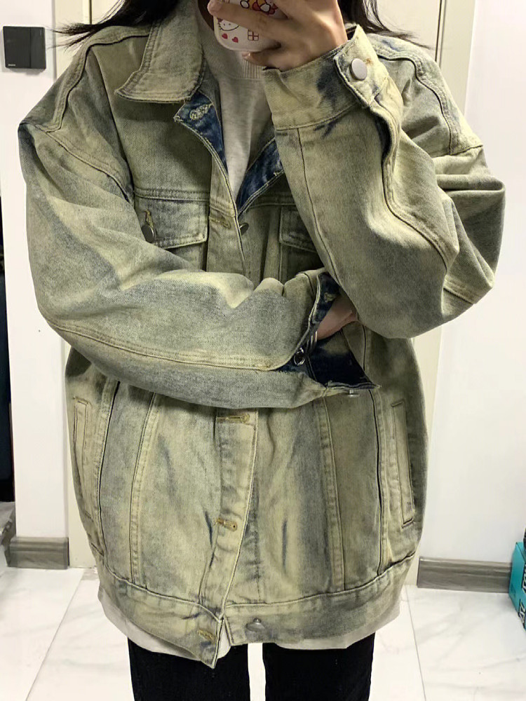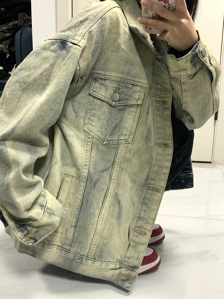 Джинсовая ретро куртка, большой размер, в американском стиле, свободный крой