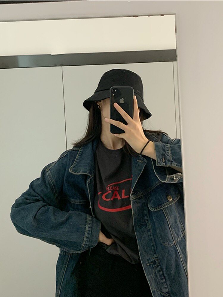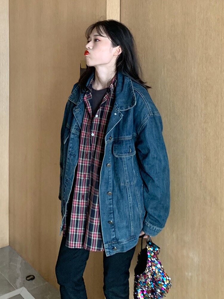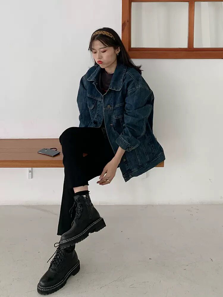 Темно-синяя джинсовая весенняя куртка, брендовый лонгслив, размер, тренд сезона, в корейском стиле