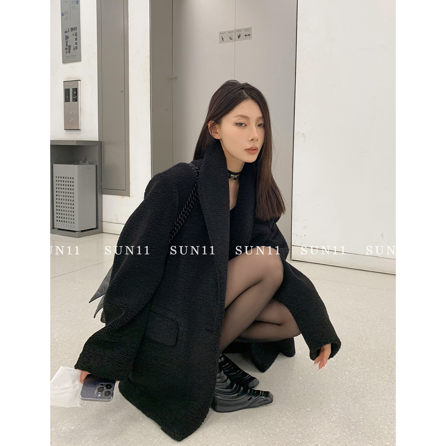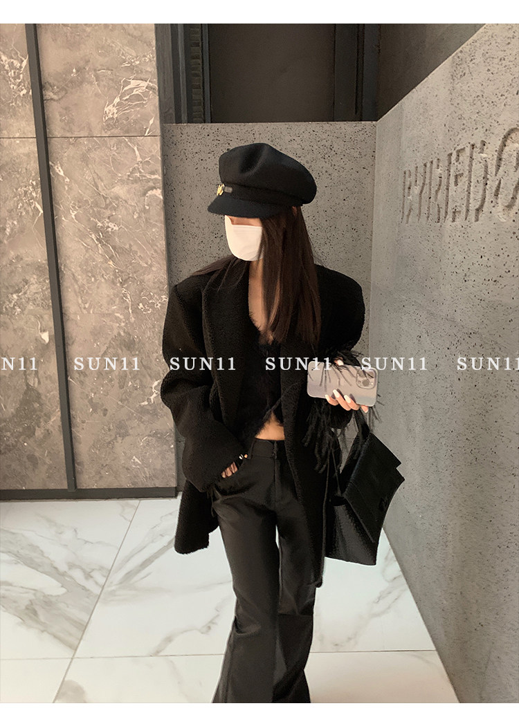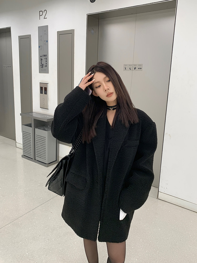 Костюм, демисезонная черная куртка, (в наличии на складе), оверсайз, изысканный стиль
