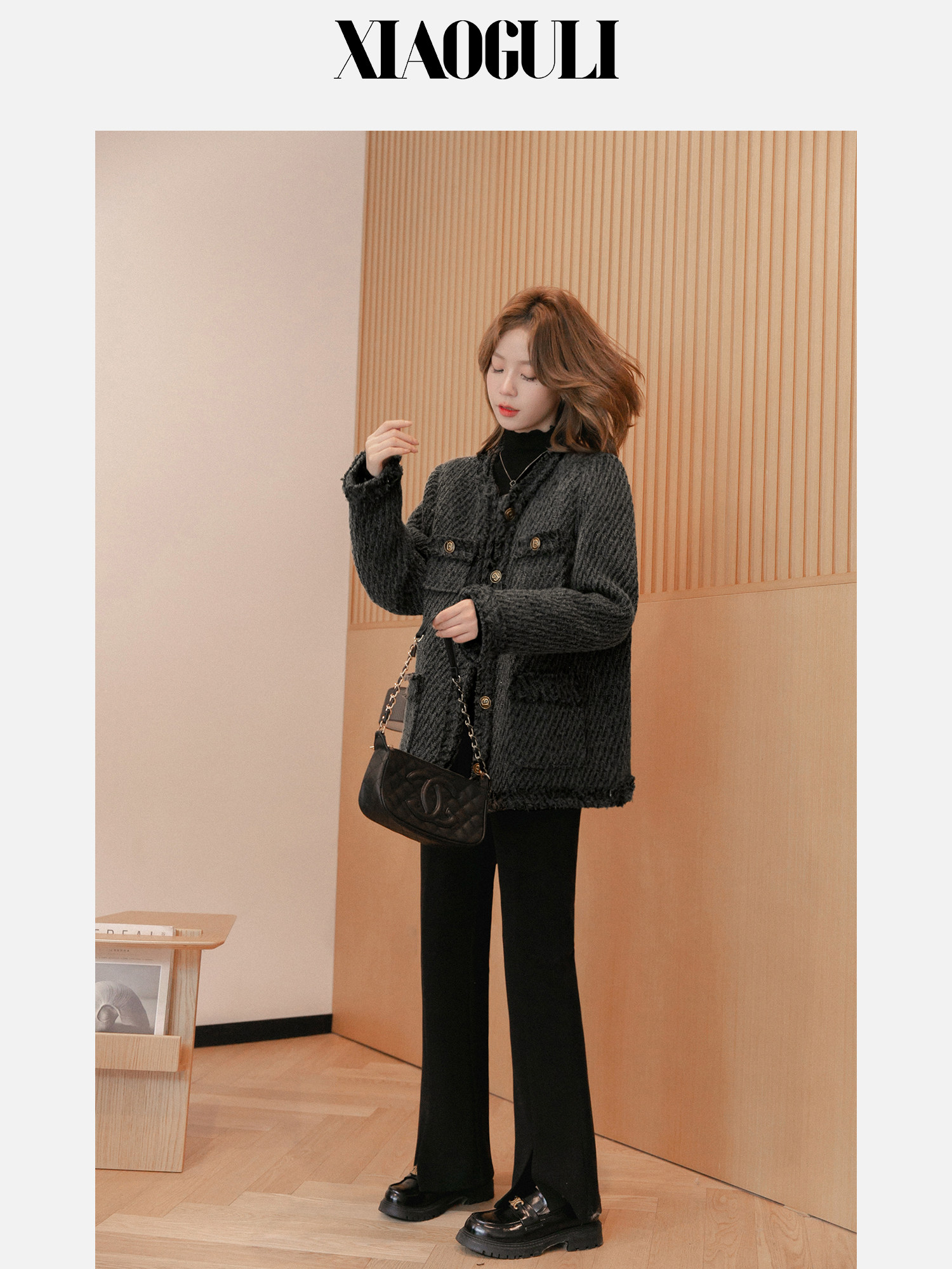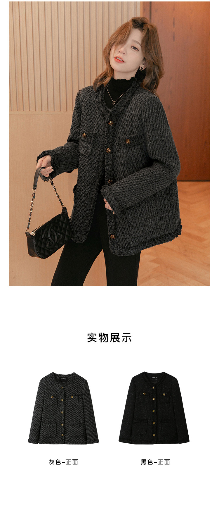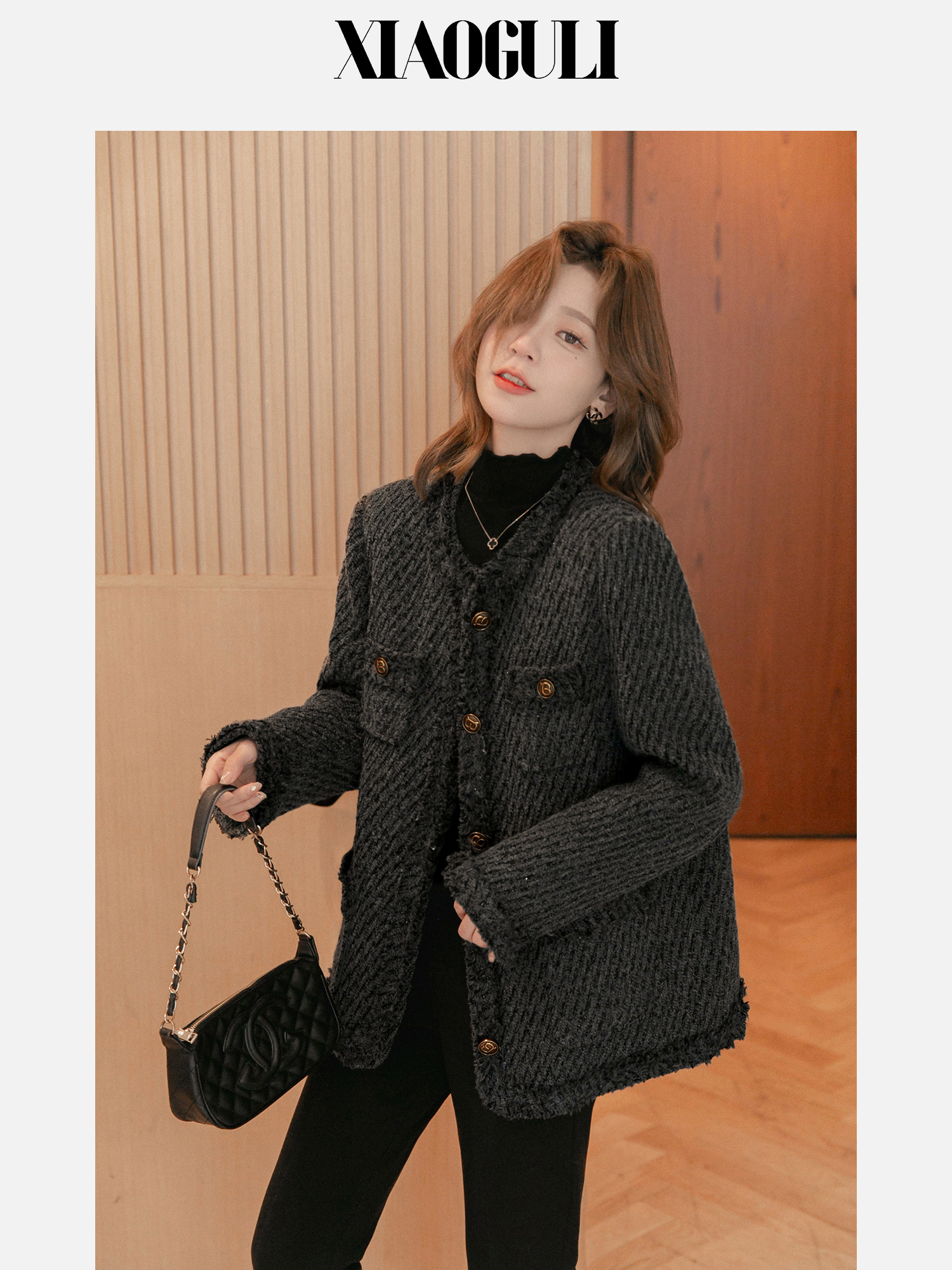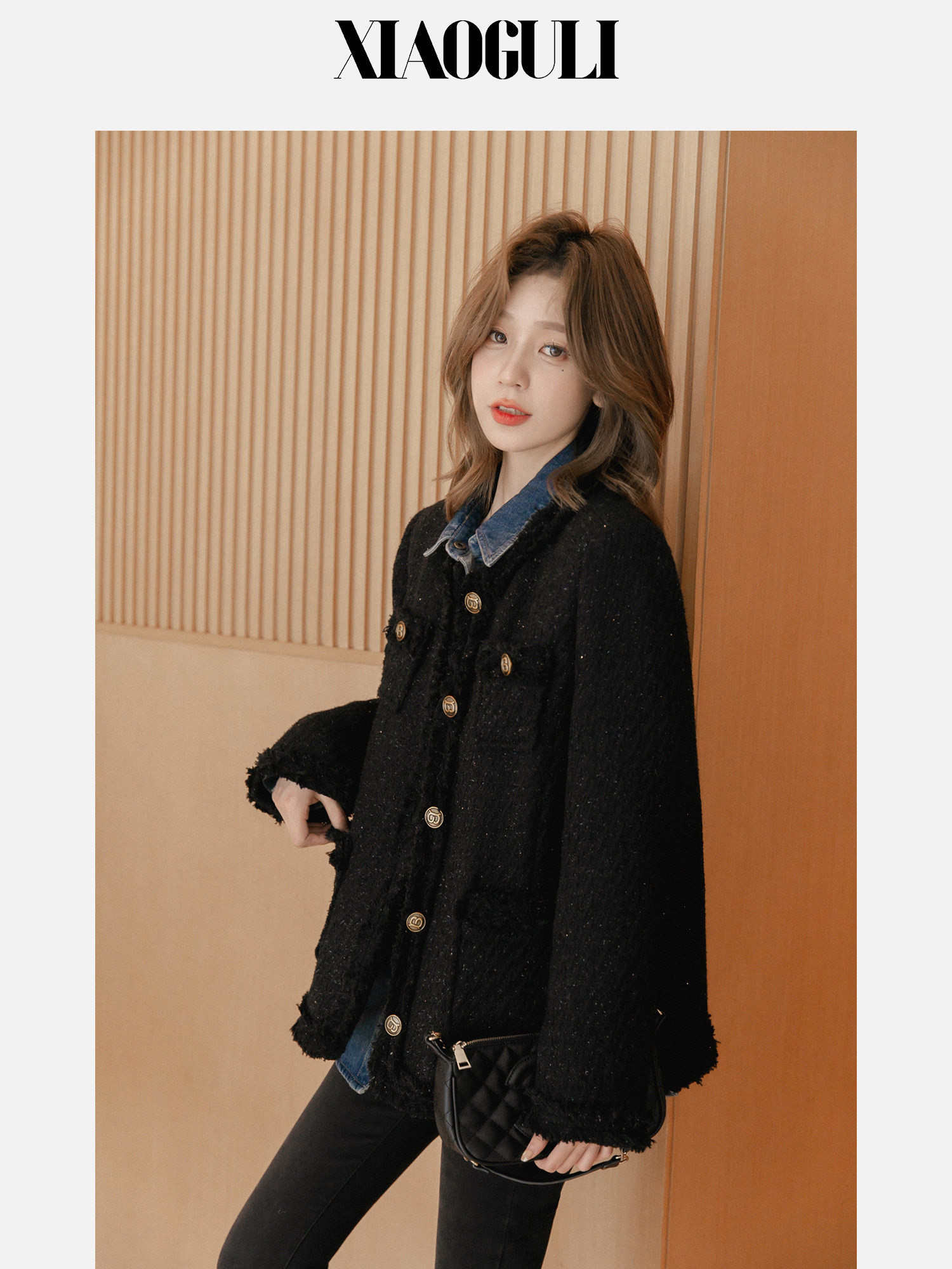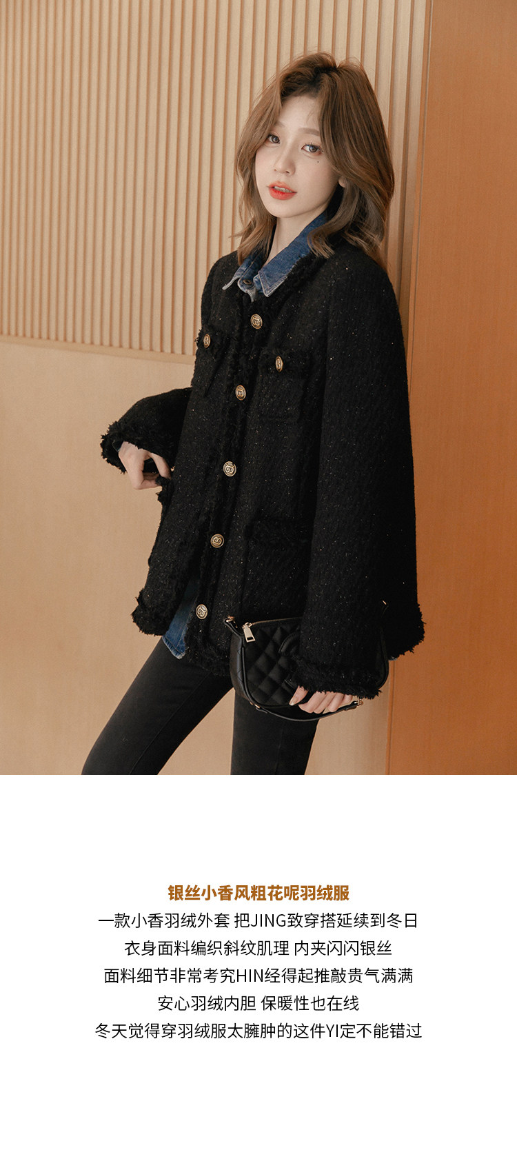 小谷粒 Вкладыш с пухом, демисезонная куртка, в стиле Шанель, премиум класс, свободный крой