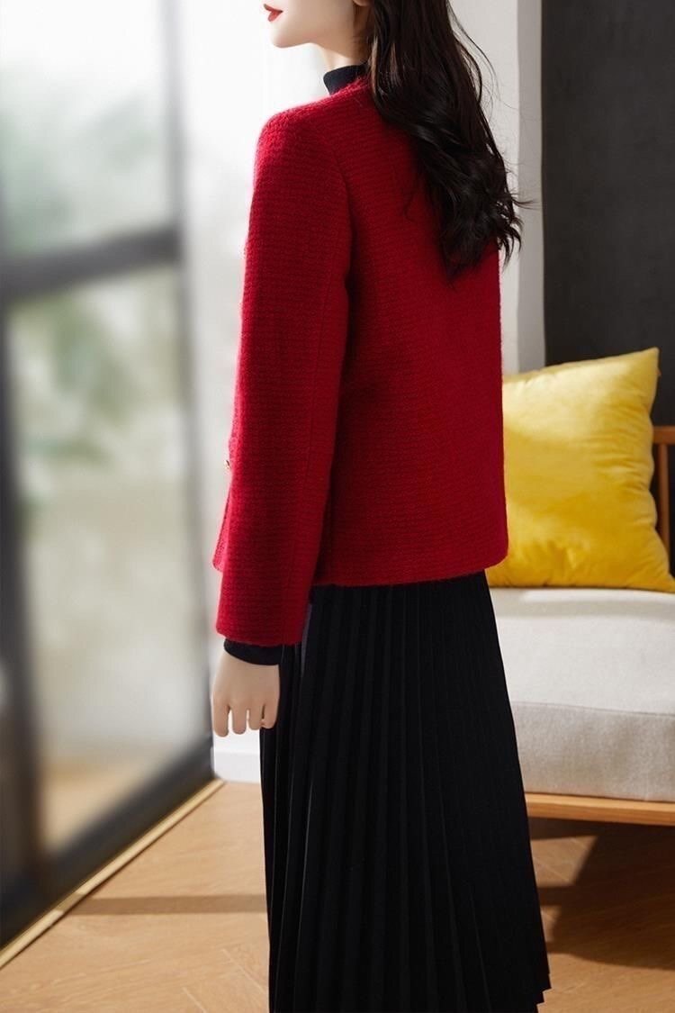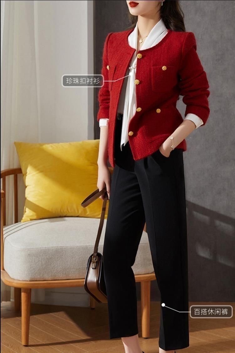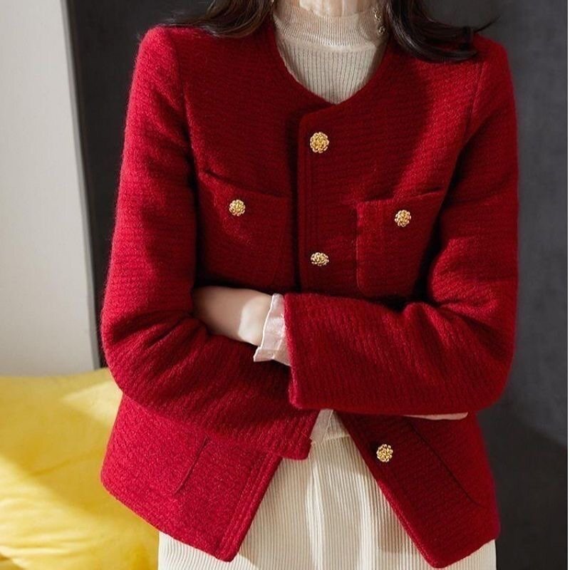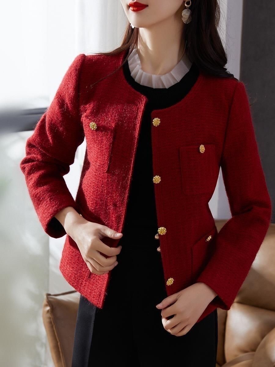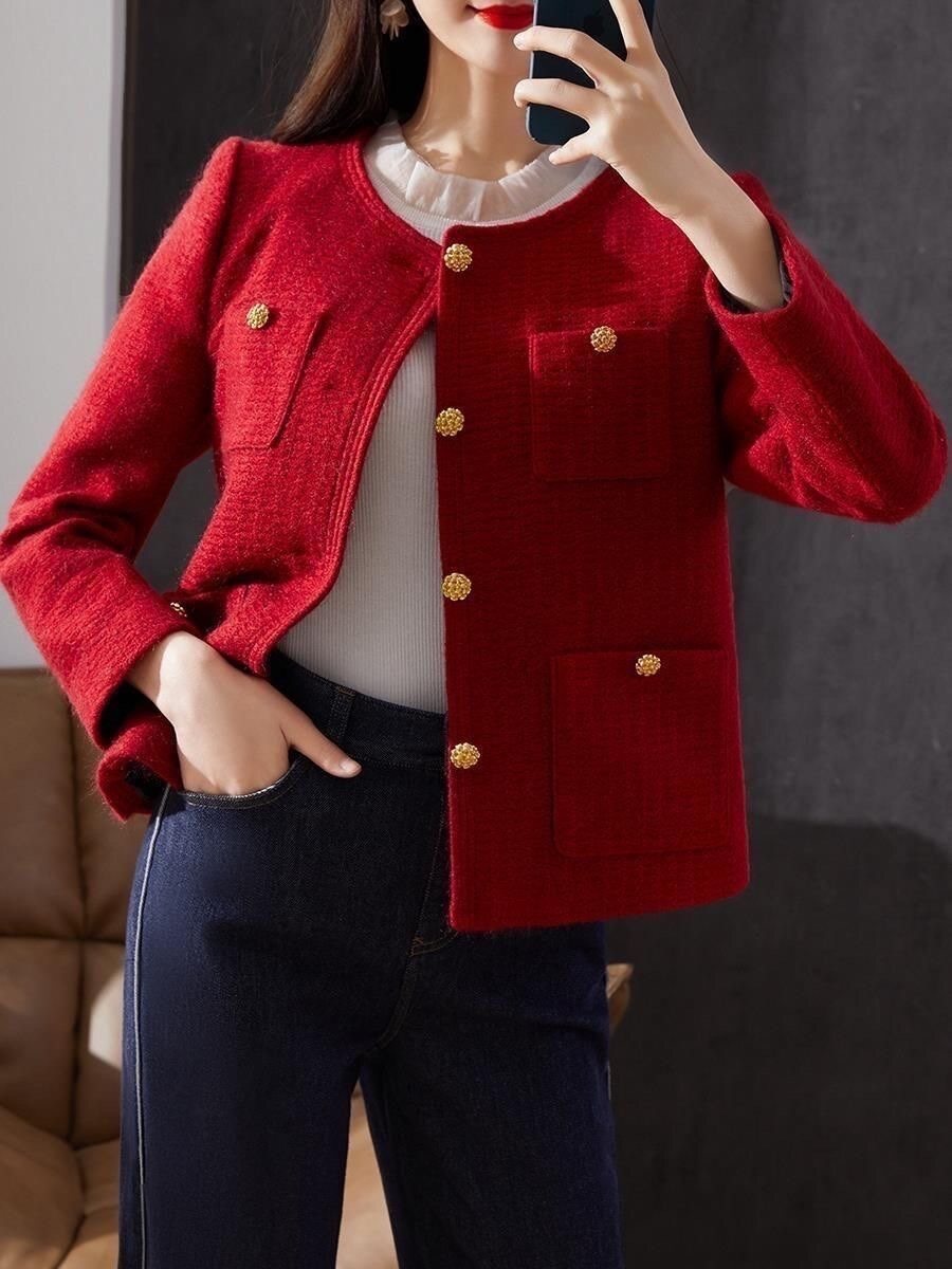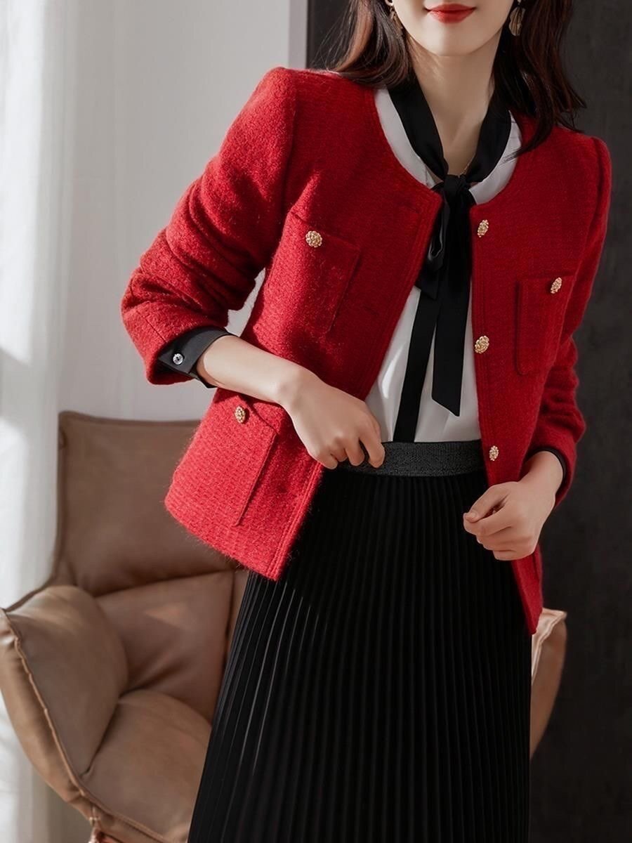 Красная демисезонная модная дизайнерская короткая куртка, в стиле Шанель, подходит для подростков, тренд сезона, яркий броский стиль, французский стиль