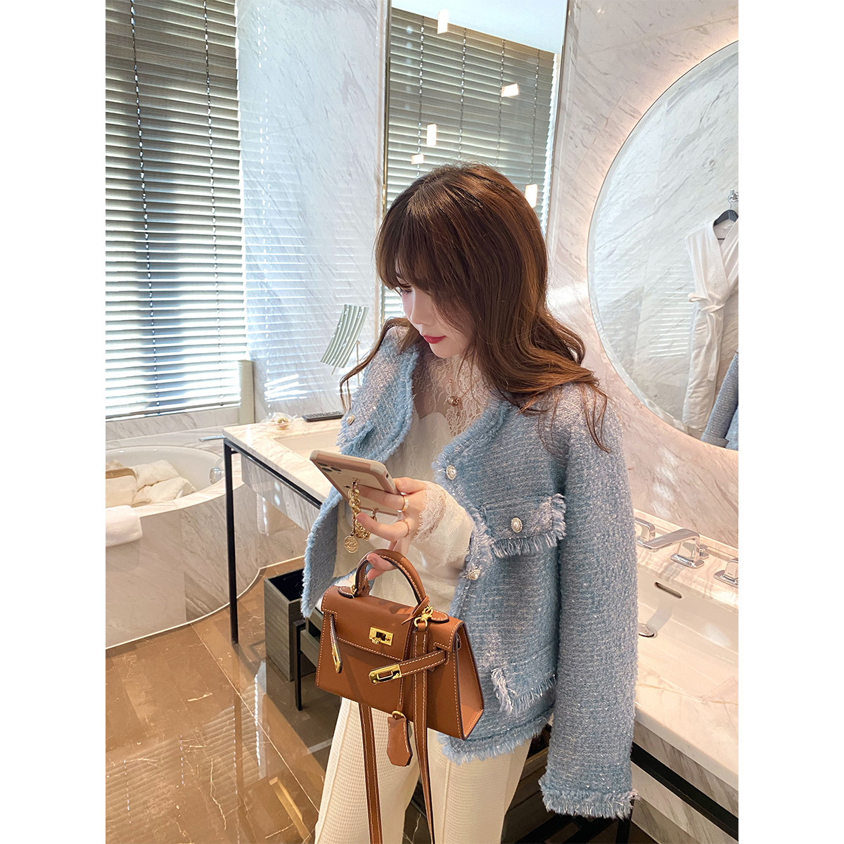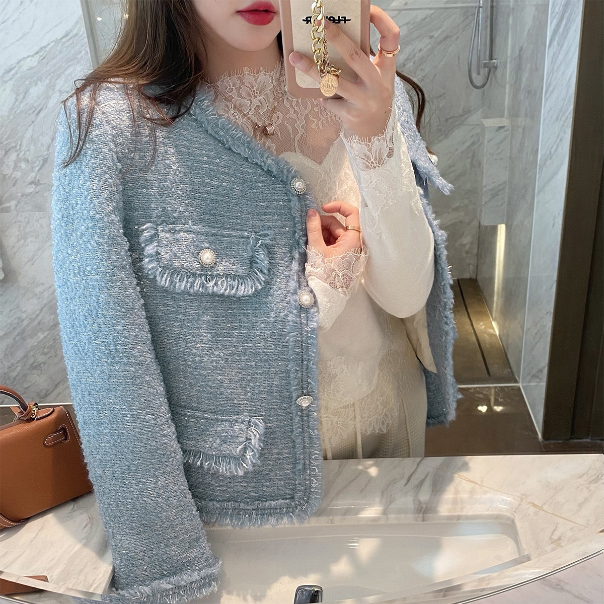 Небольшая куртка, пуховик, в стиле Шанель