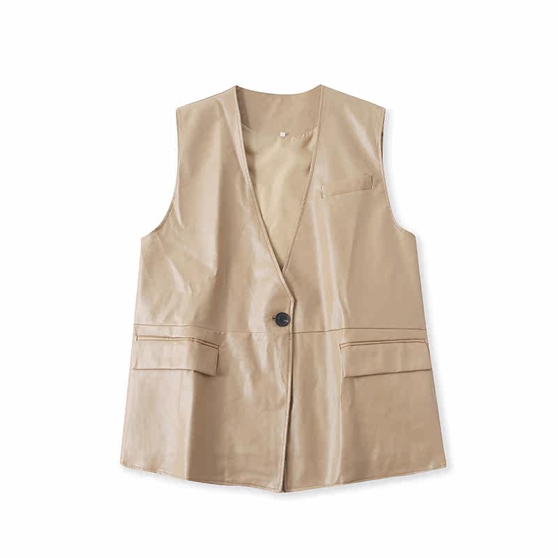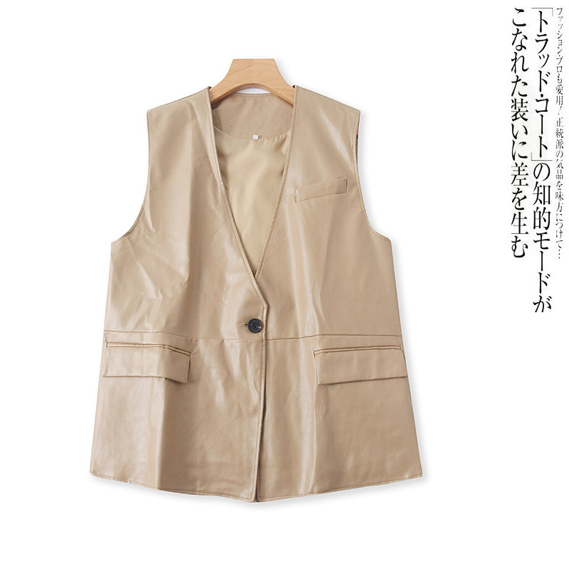 Полиуретановый жилет, модная куртка для отдыха без рукавов, V-образный вырез, крой, оверсайз