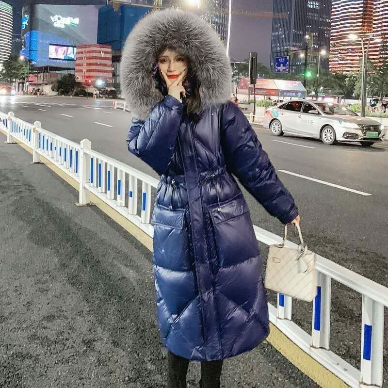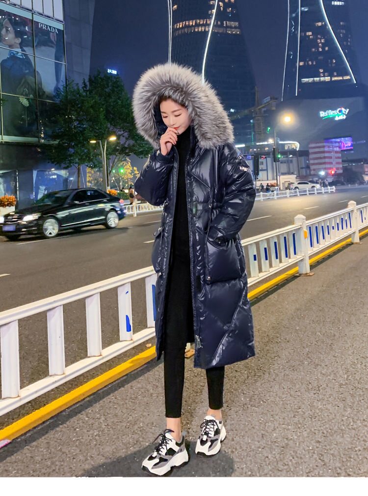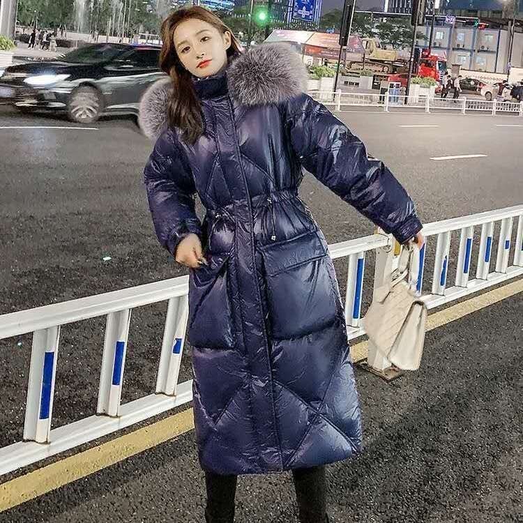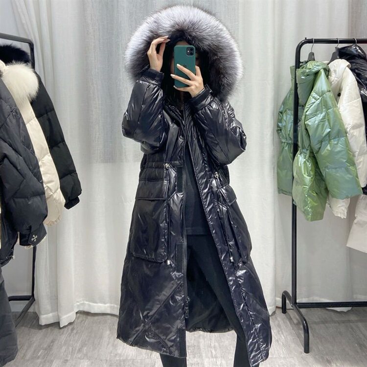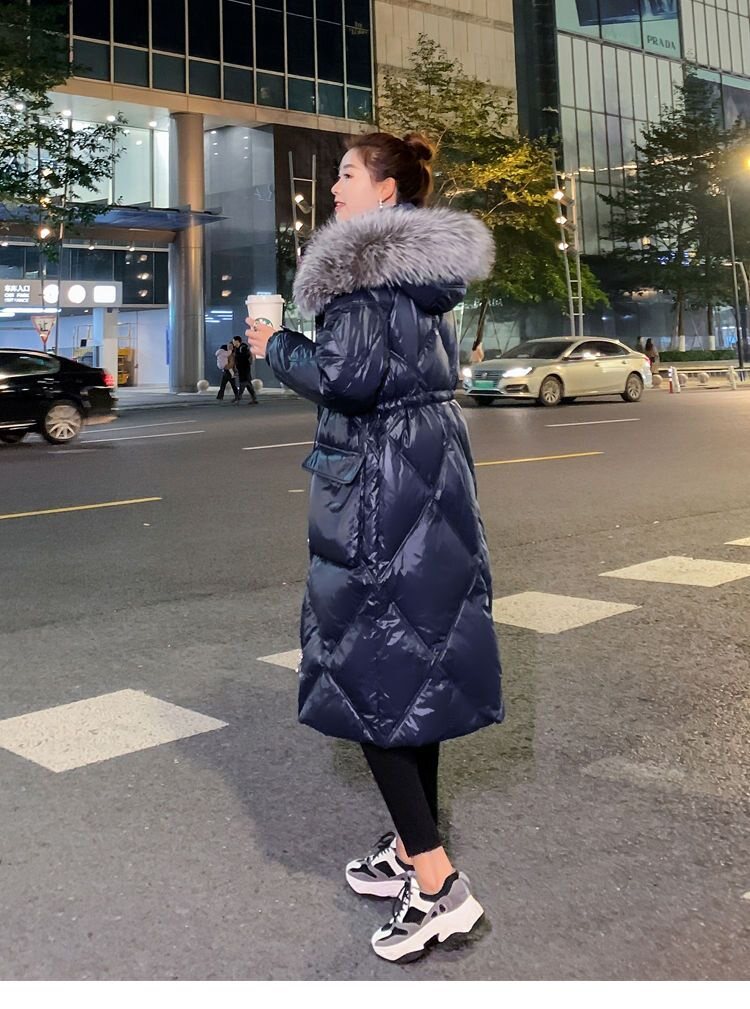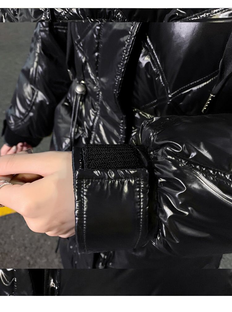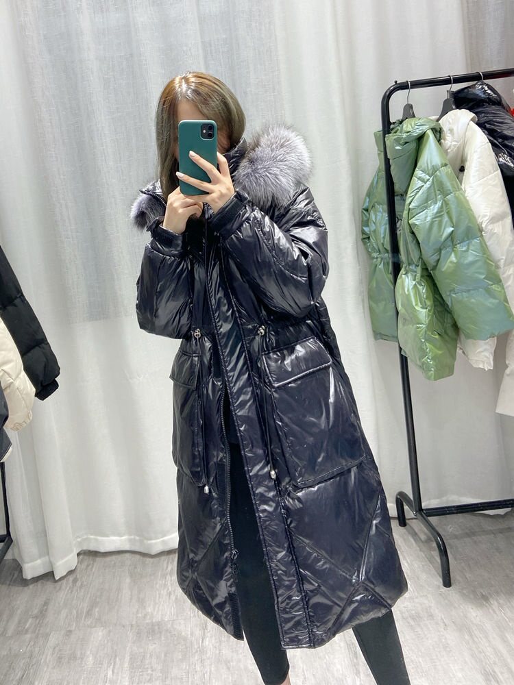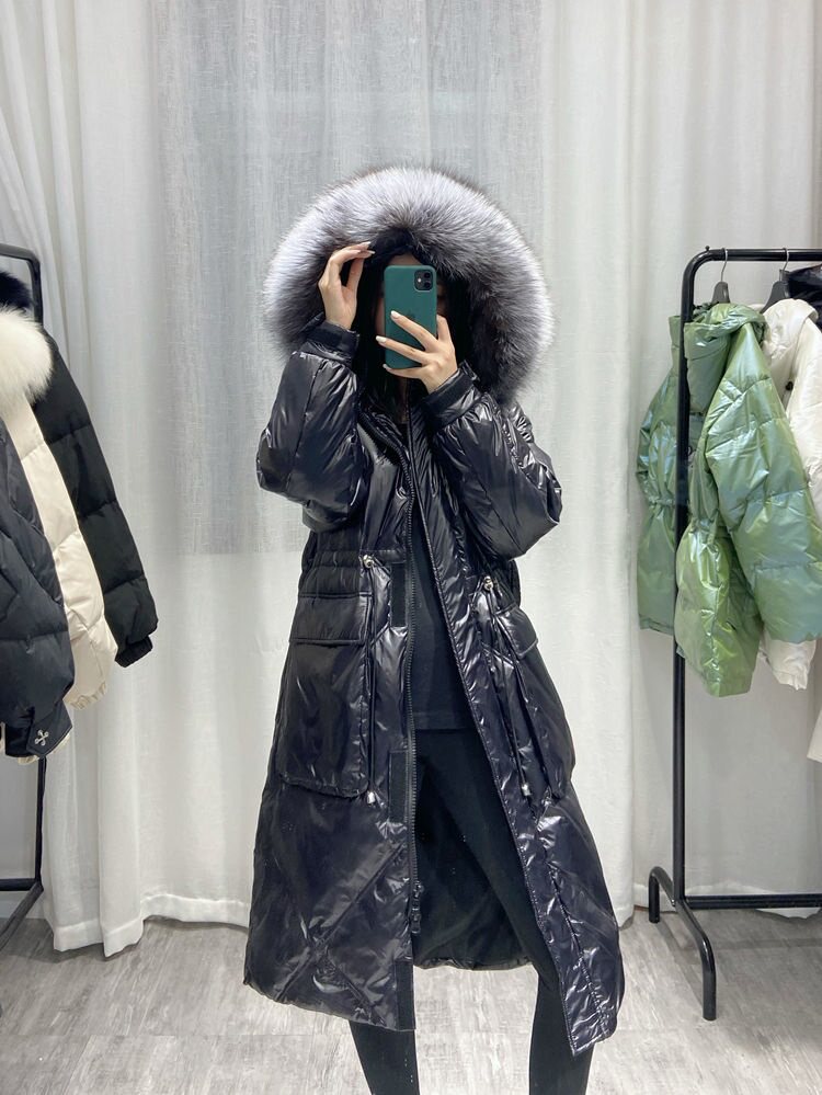 Зимний вместительный и большой глянцевый длинный пуховик, куртка, 2024 года, средней длины