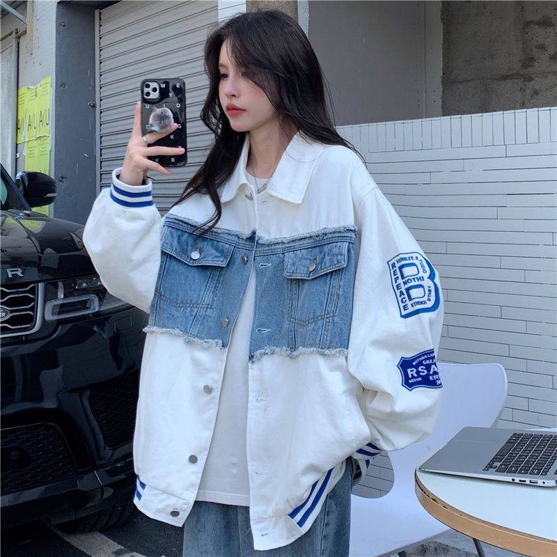 Очень большая джинсовая осенняя брендовая куртка, большой размер, в американском стиле, оверсайз