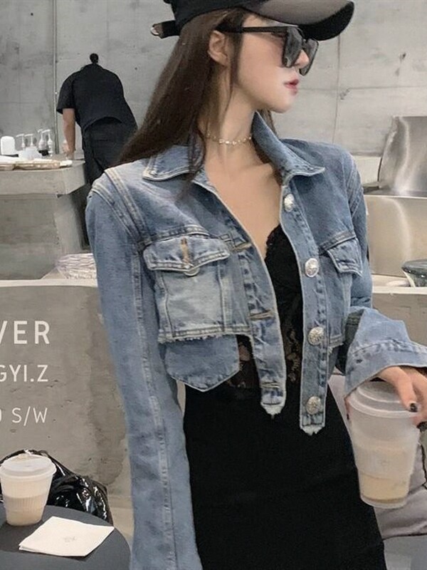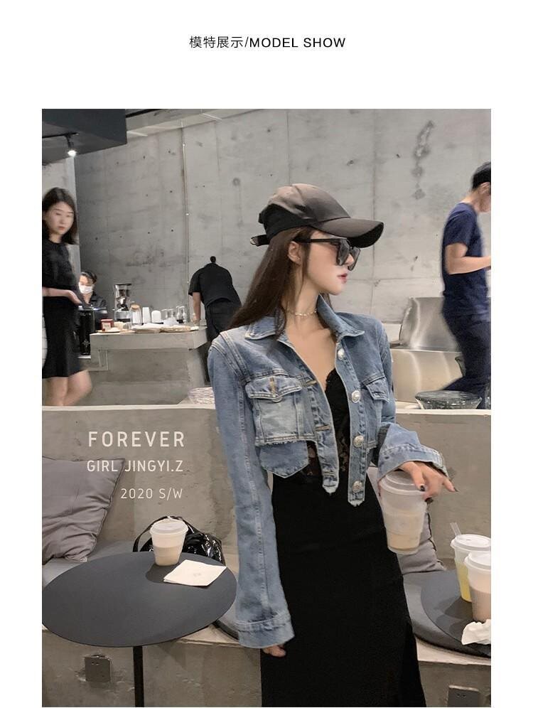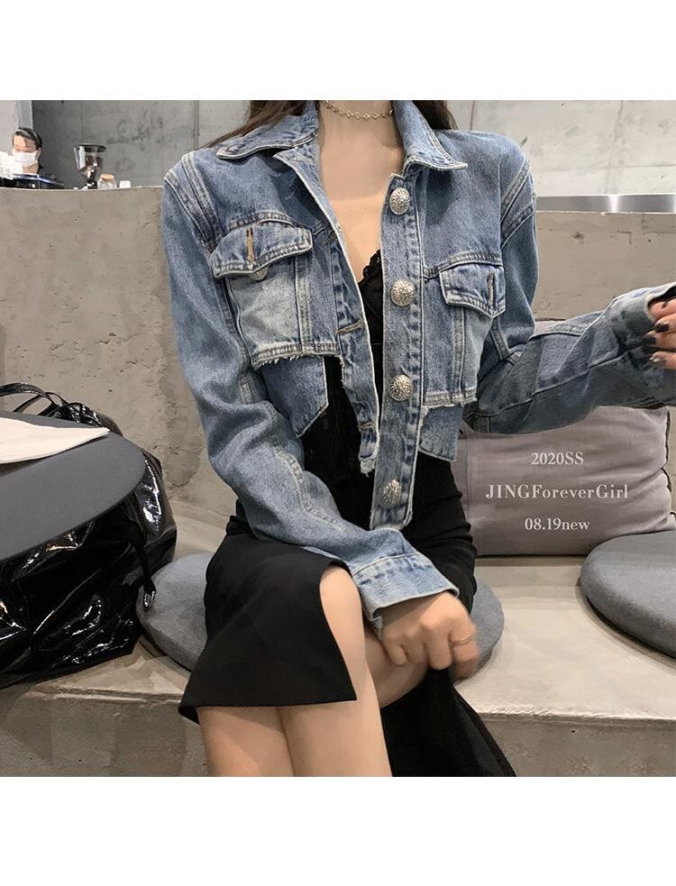 Джинсовая короткая ретро приталенная светлая демисезонная тонкая куртка, подходит для подростков, в корейском стиле