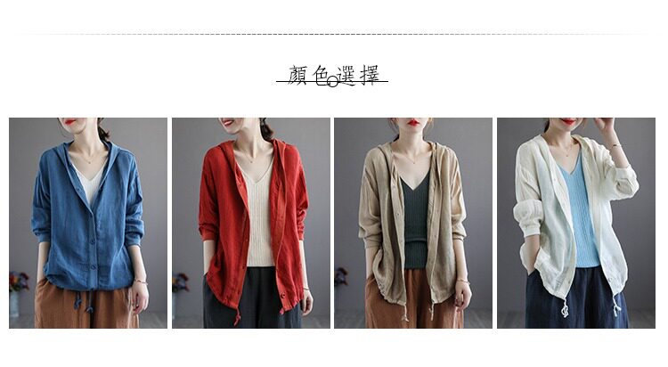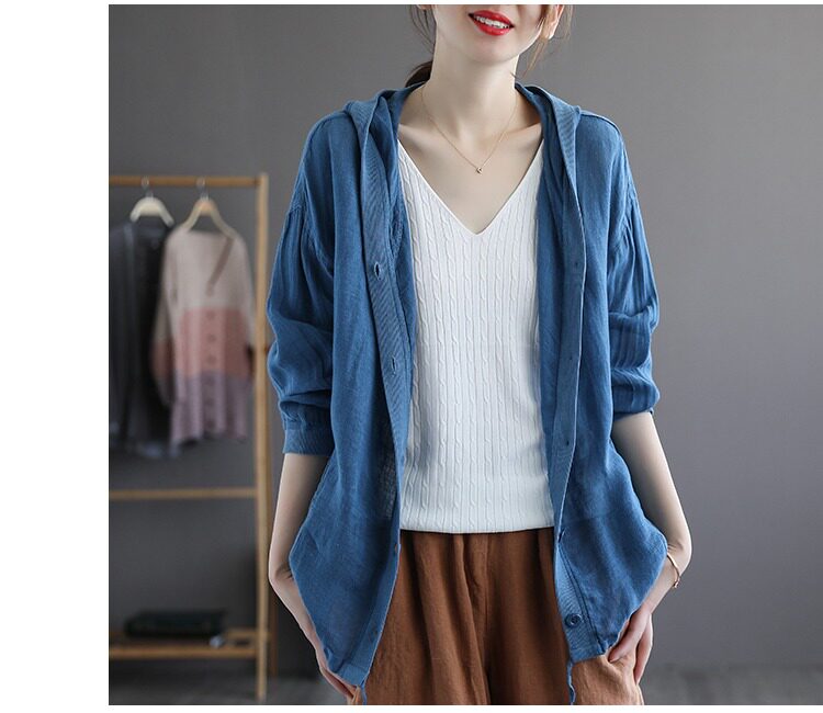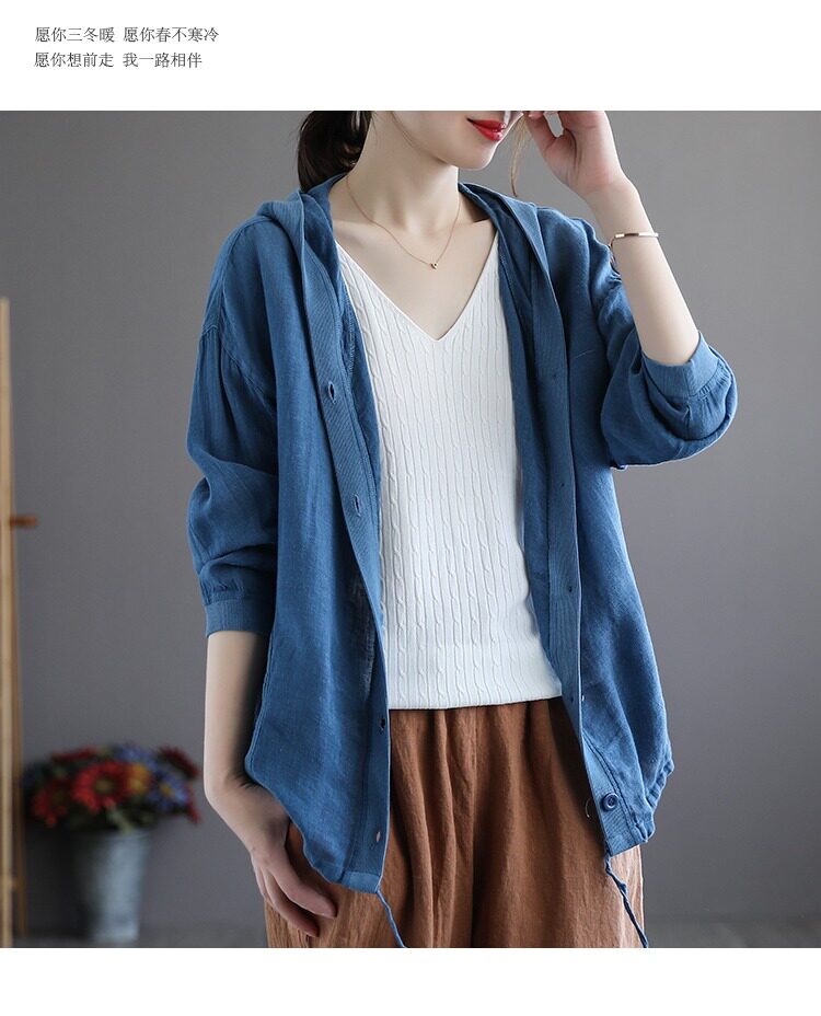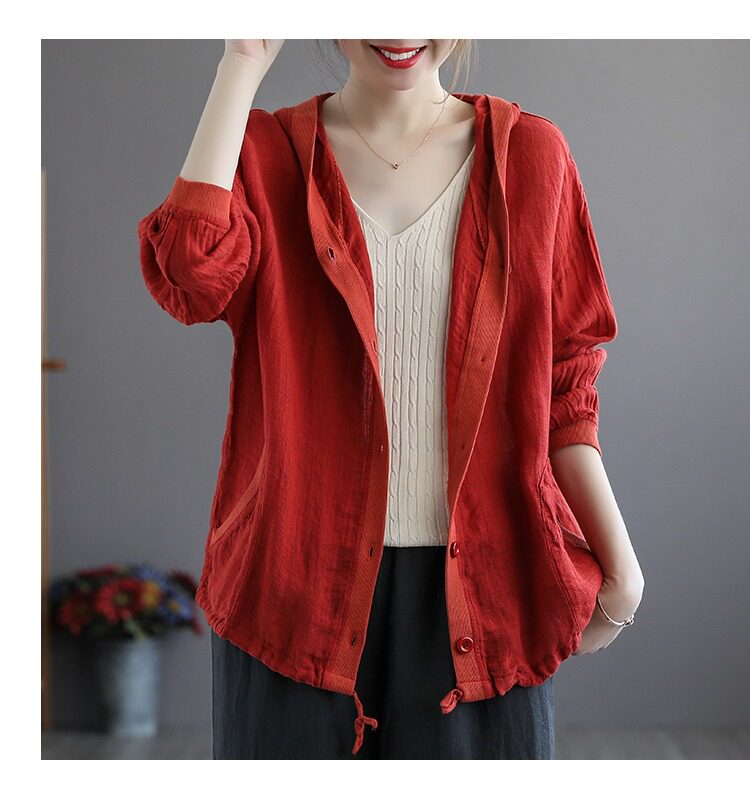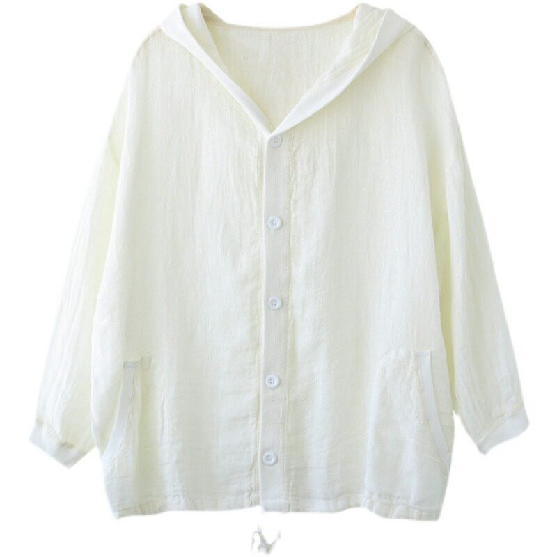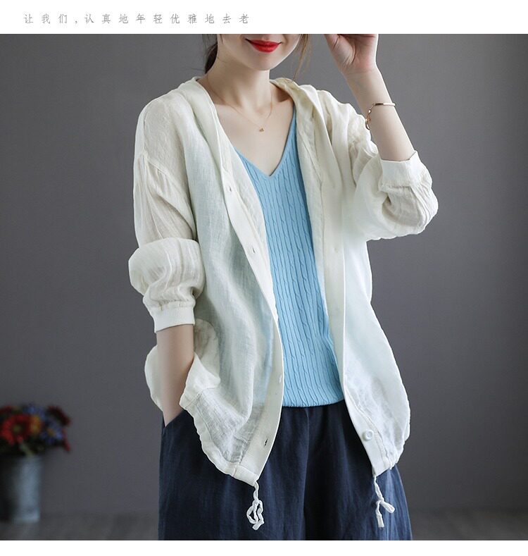 Брендовая толстовка с капюшоном, кардиган, из хлопка и льна, оверсайз, защита от солнца