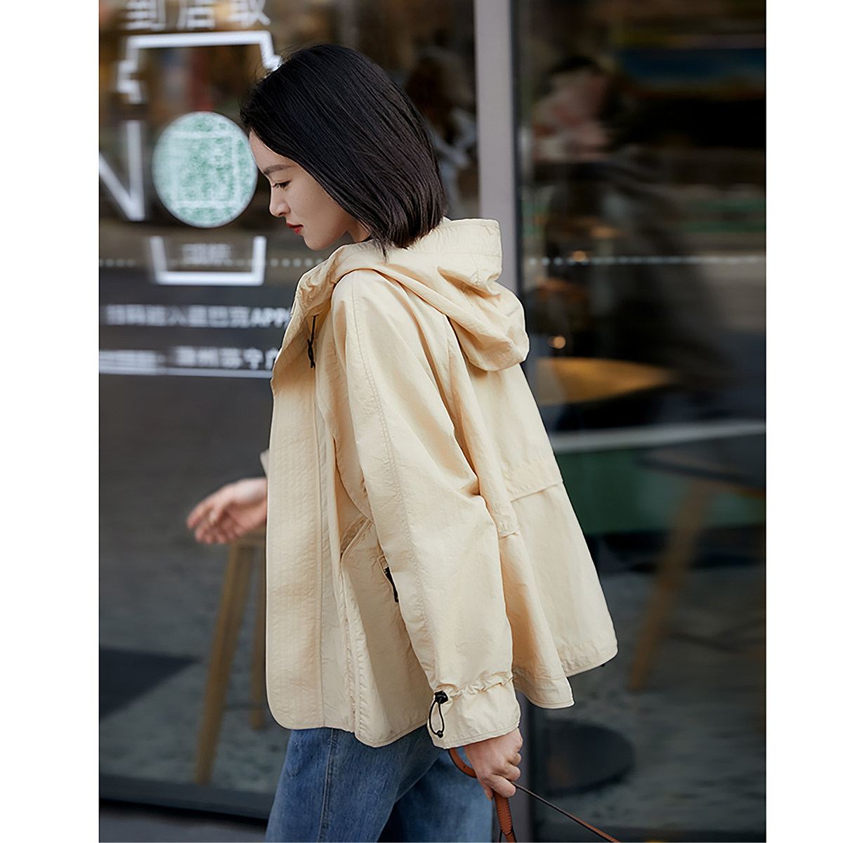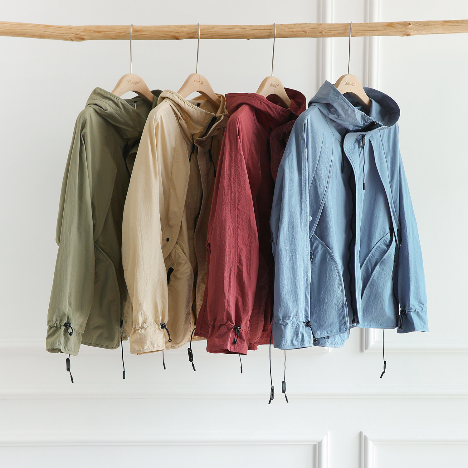Многоцветная весенняя куртка с капюшоном, (в наличии на складе), свободный крой, на шнурках