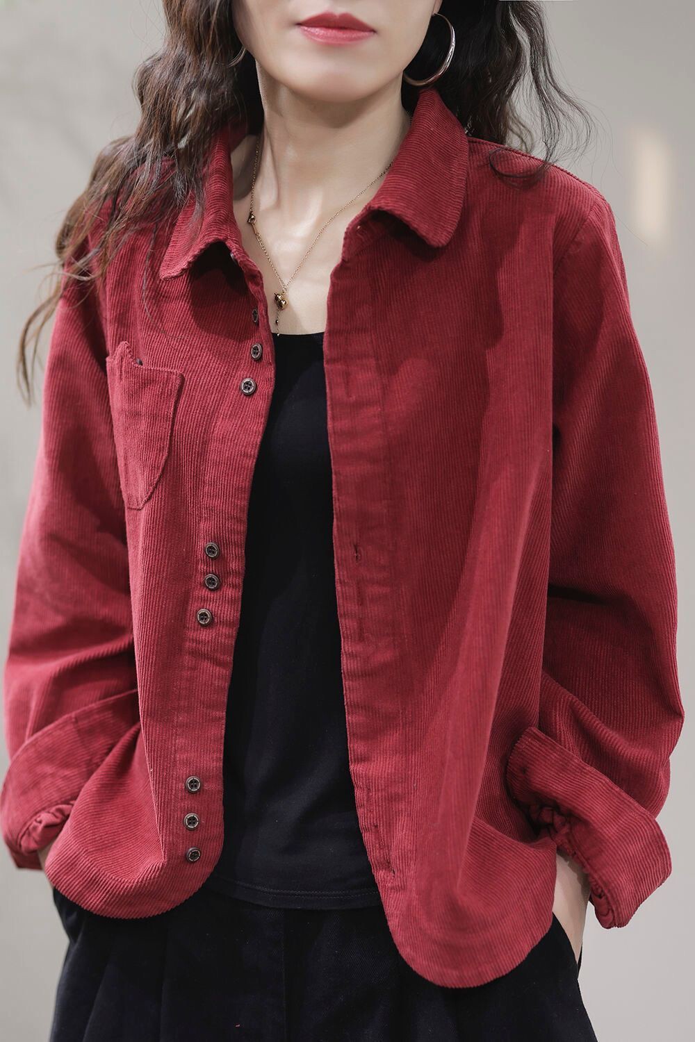 (Трансграничная торговля), ретро вельветовый лонгслив, весенняя куртка для отдыха