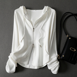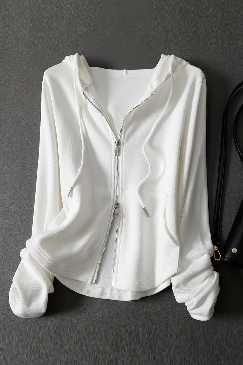 Белая толстовка с капюшоном, весенняя тонкая куртка, кардиган с молнией, 2024 года, тренд сезона