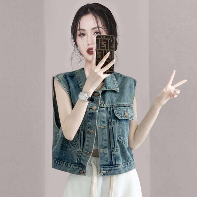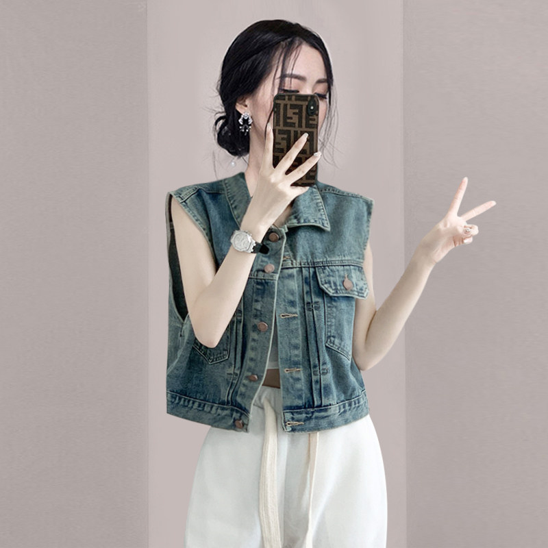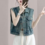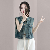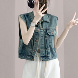 Джинсовый жилет, короткая куртка, летняя майка без рукавов, коллекция 2023, подходит для подростков