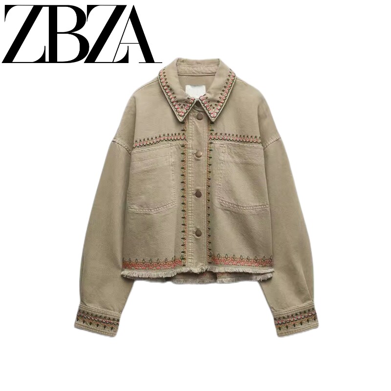 Осенний лонгслив, рубашка, куртка, городской стиль, с вышивкой, свободный крой