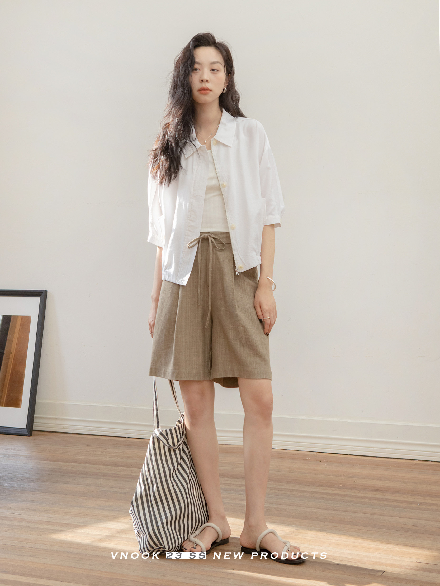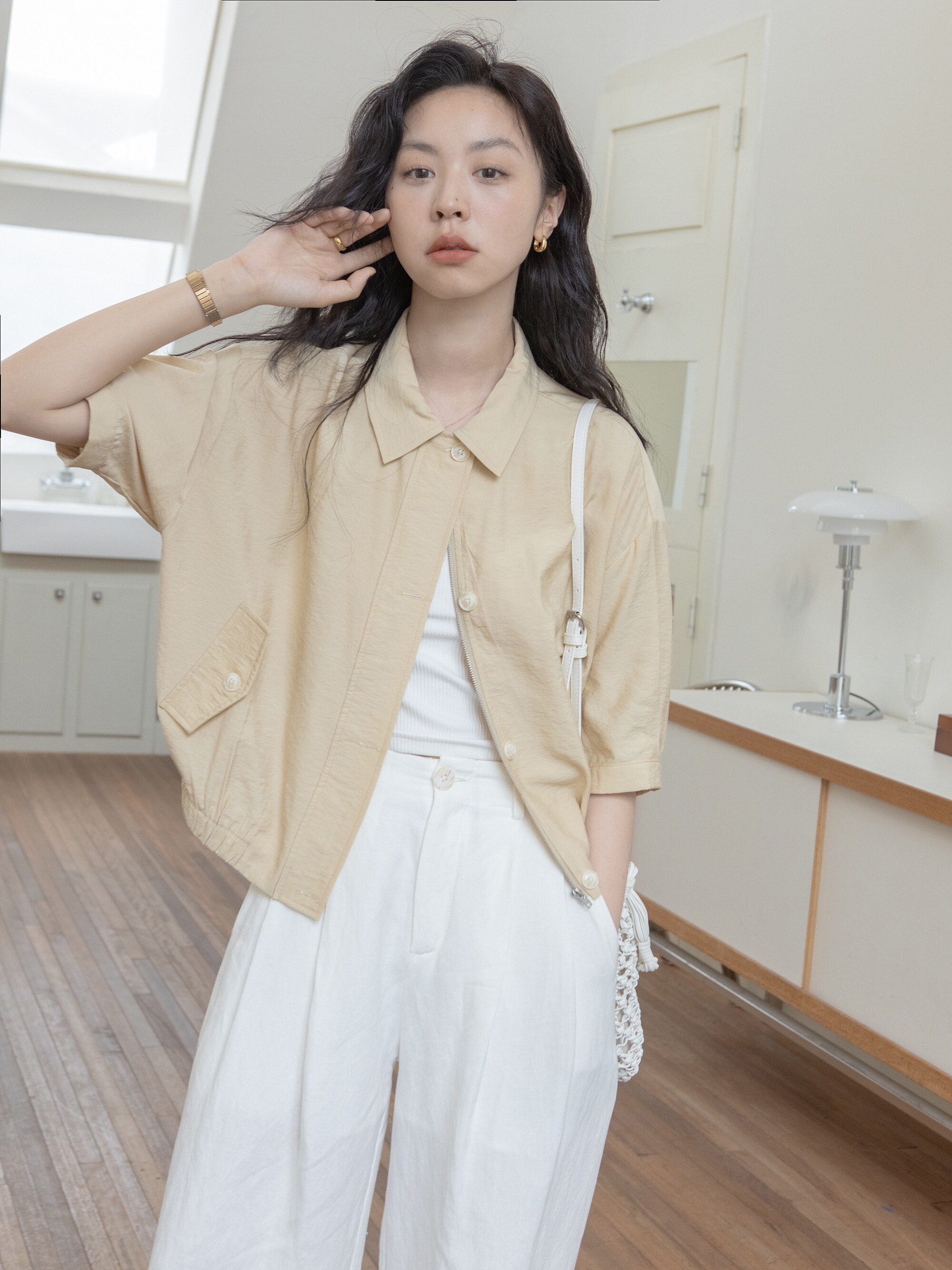 Летняя рубашка с молнией, дизайнерская легкая и тонкая куртка, короткий рукав, тренд сезона, облегающий крой