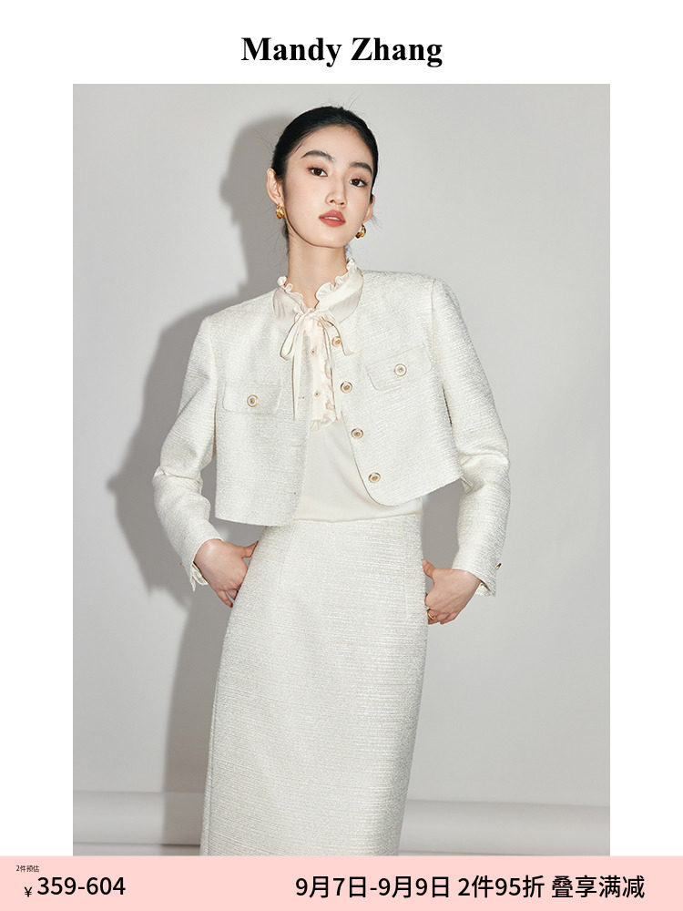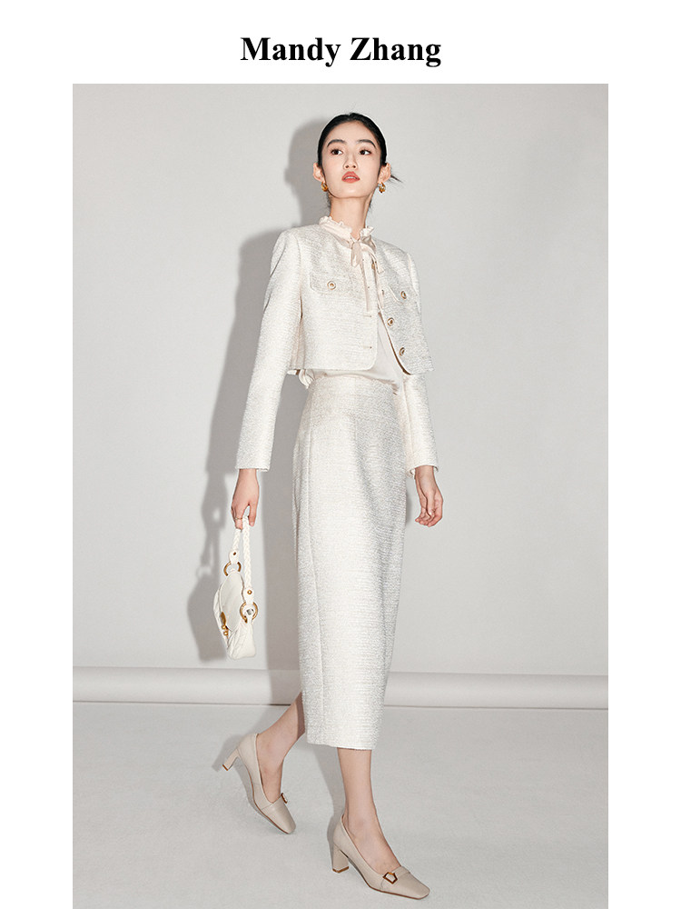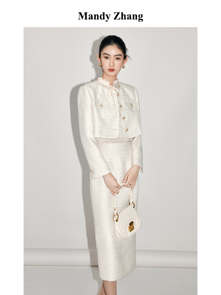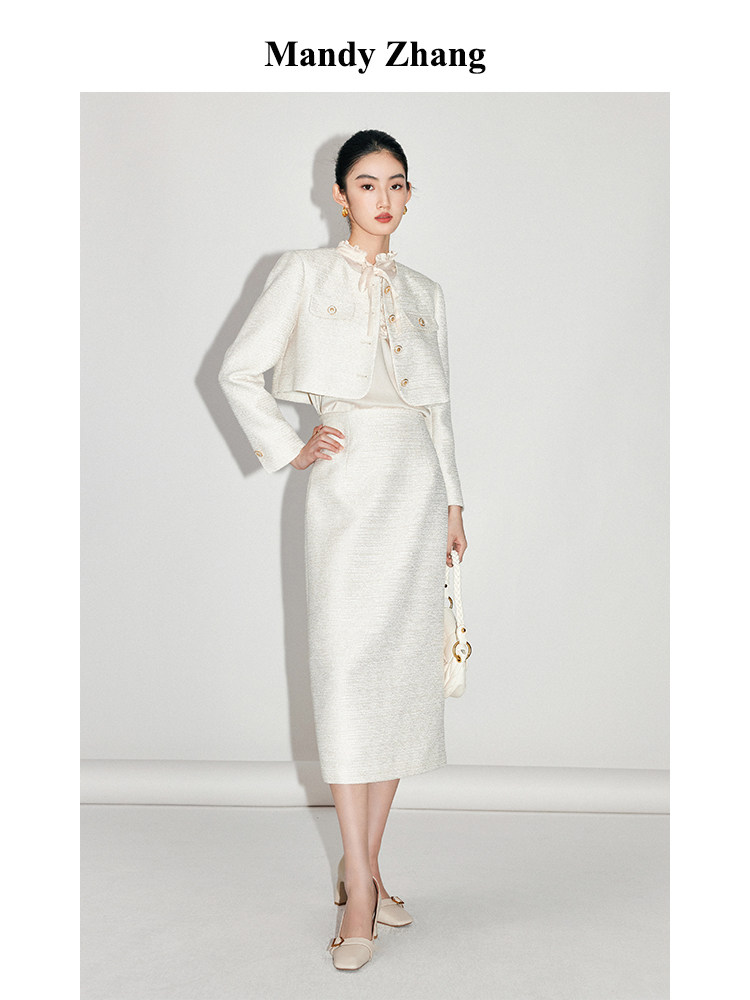 Белая ретро куртка, комплект, весенняя юбка, легкий роскошный стиль, французский стиль, в стиле Шанель