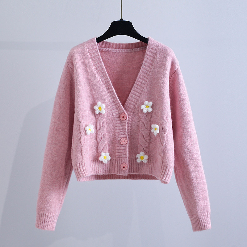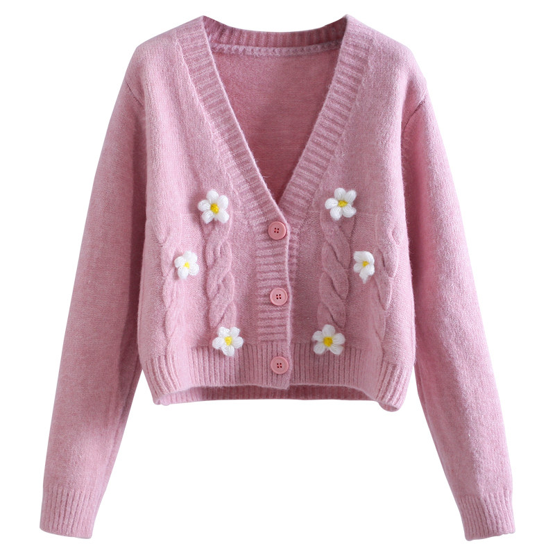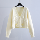 (Трансграничная торговля), демисезонный трехмерный короткий свитер, трикотажная куртка, изысканный стиль, в цветочек, подходит для подростков