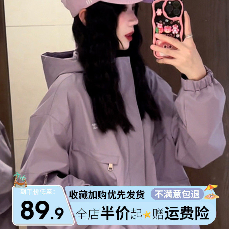 Дорожная сиреневая осенняя демисезонная небольшая куртка для отдыха, в американском стиле, подходит для подростков