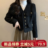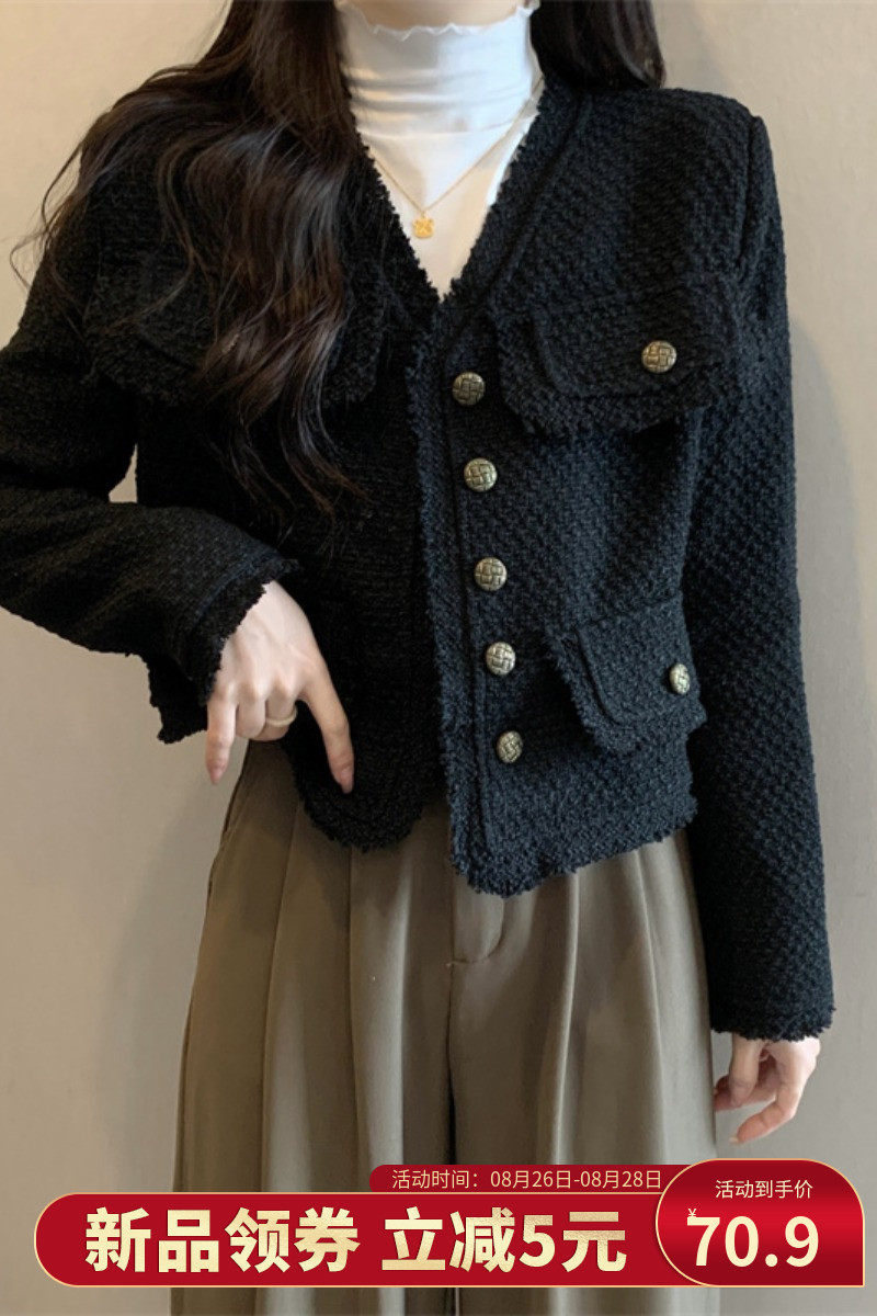 Черный лонгслив, демисезонная осенняя куртка, большой размер, в стиле Шанель, V-образный вырез