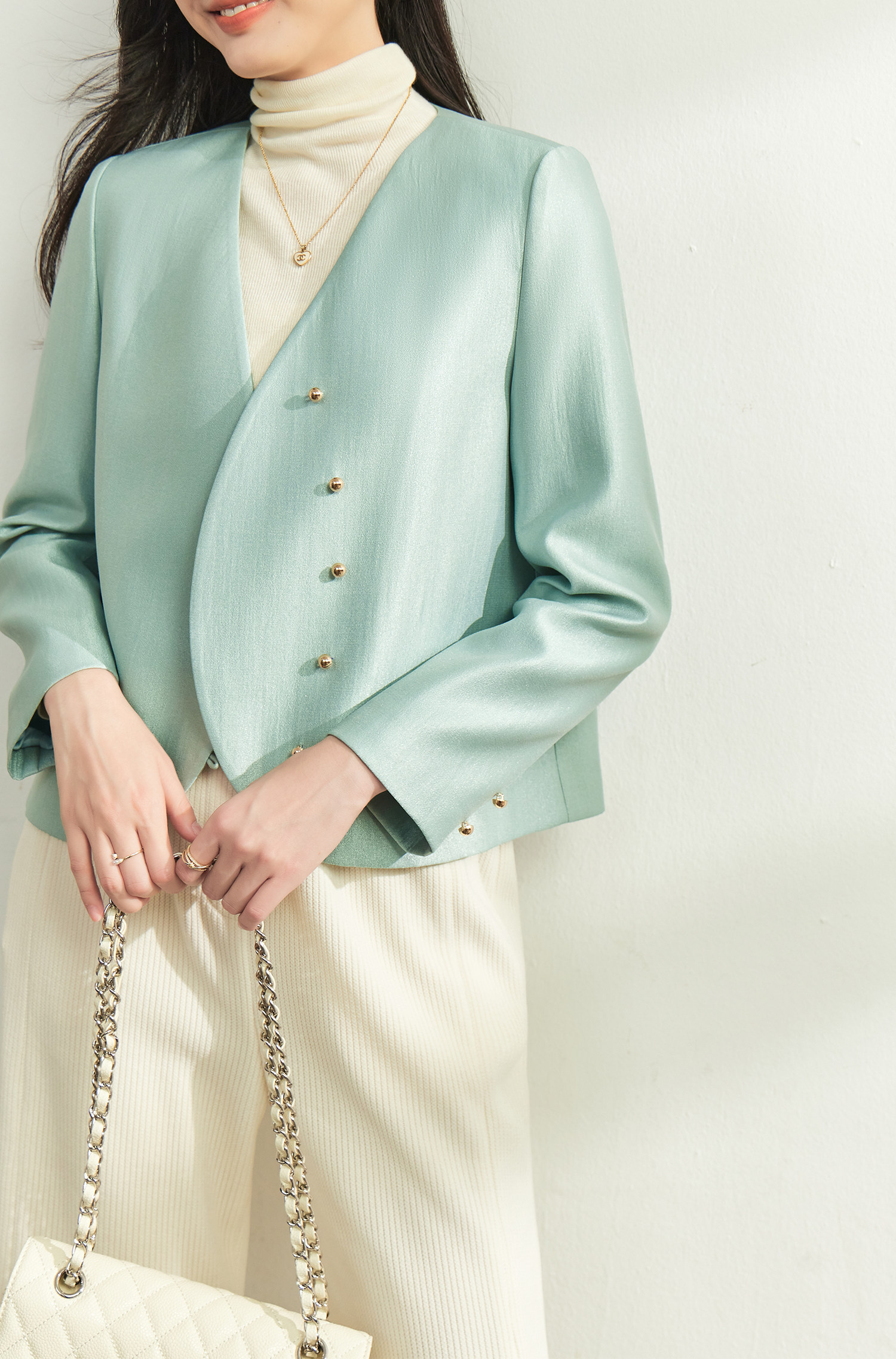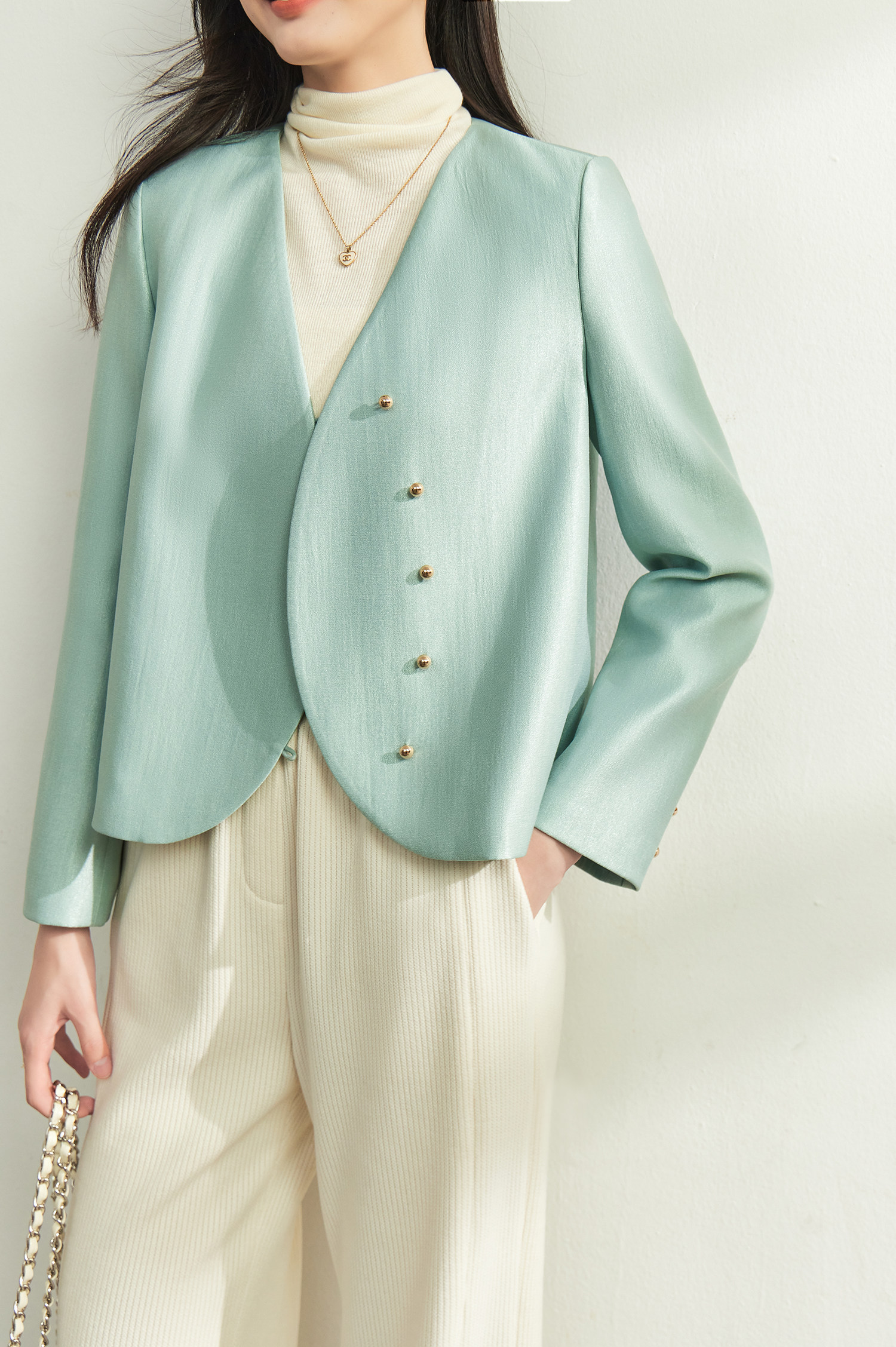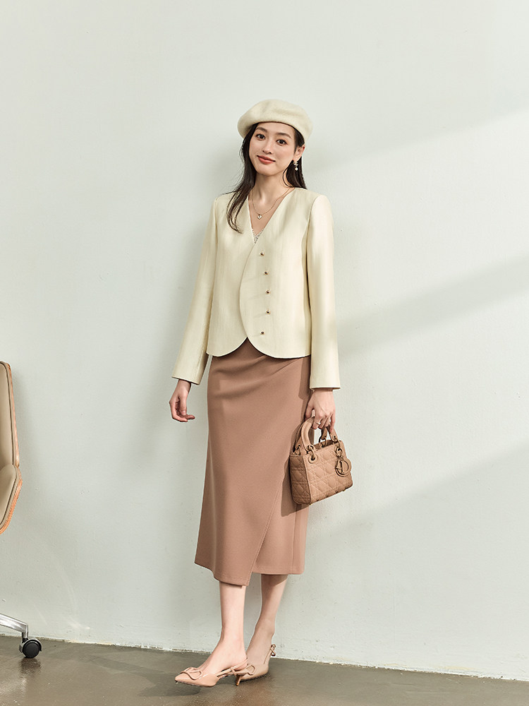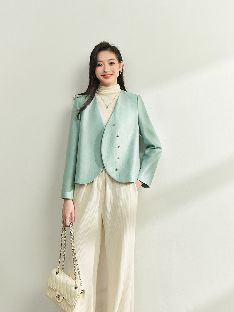 Изысканный осенний демисезонный короткий пиджак классического кроя, китайский стиль, в стиле Шанель, V-образный вырез