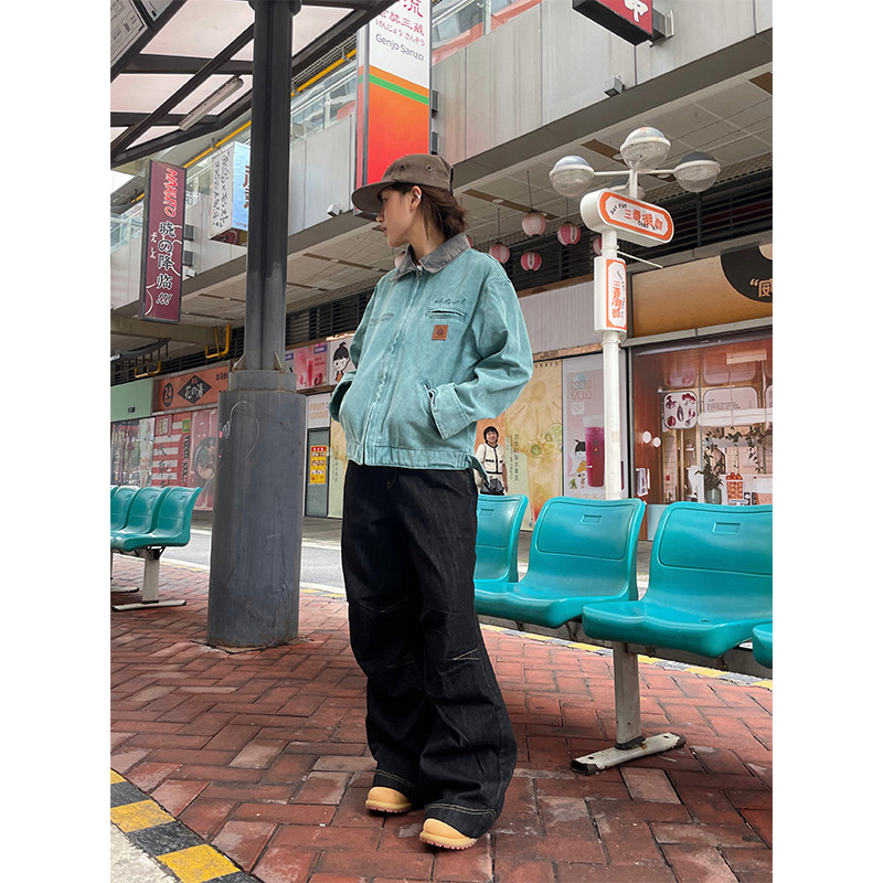 Короткая джинсовая осенняя куртка подходит для мужчин и женщин, в американском стиле