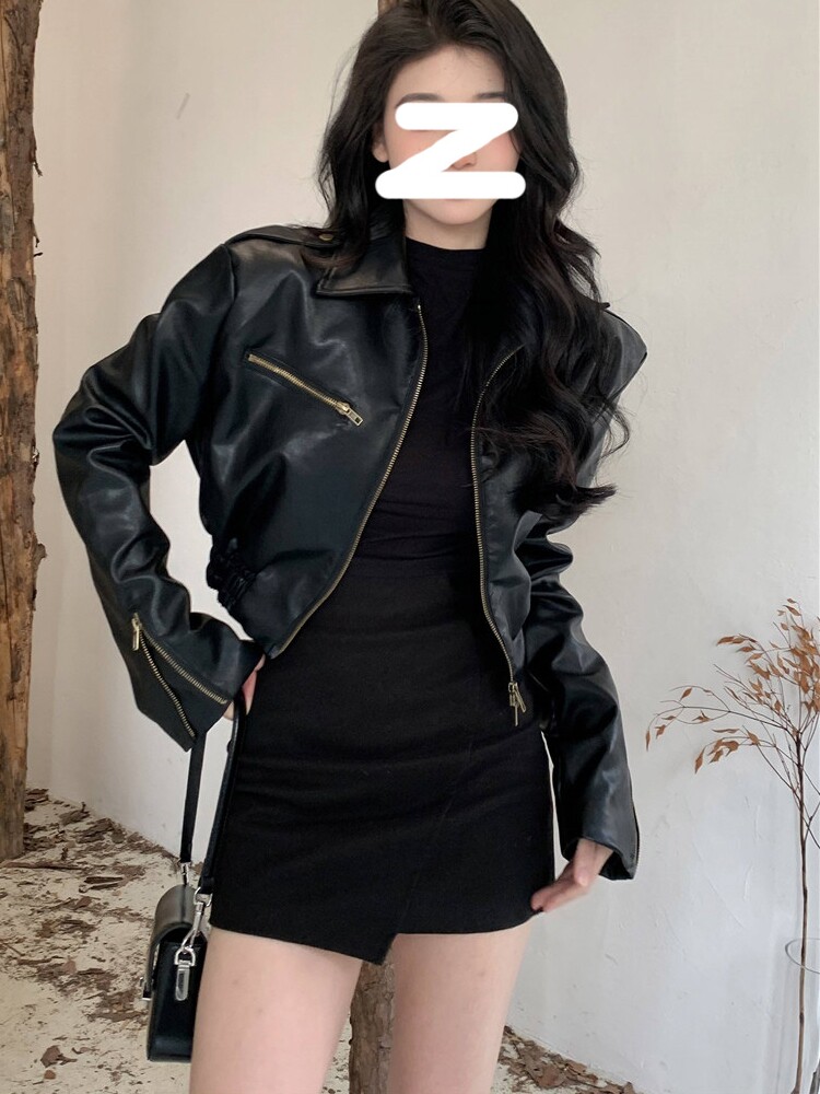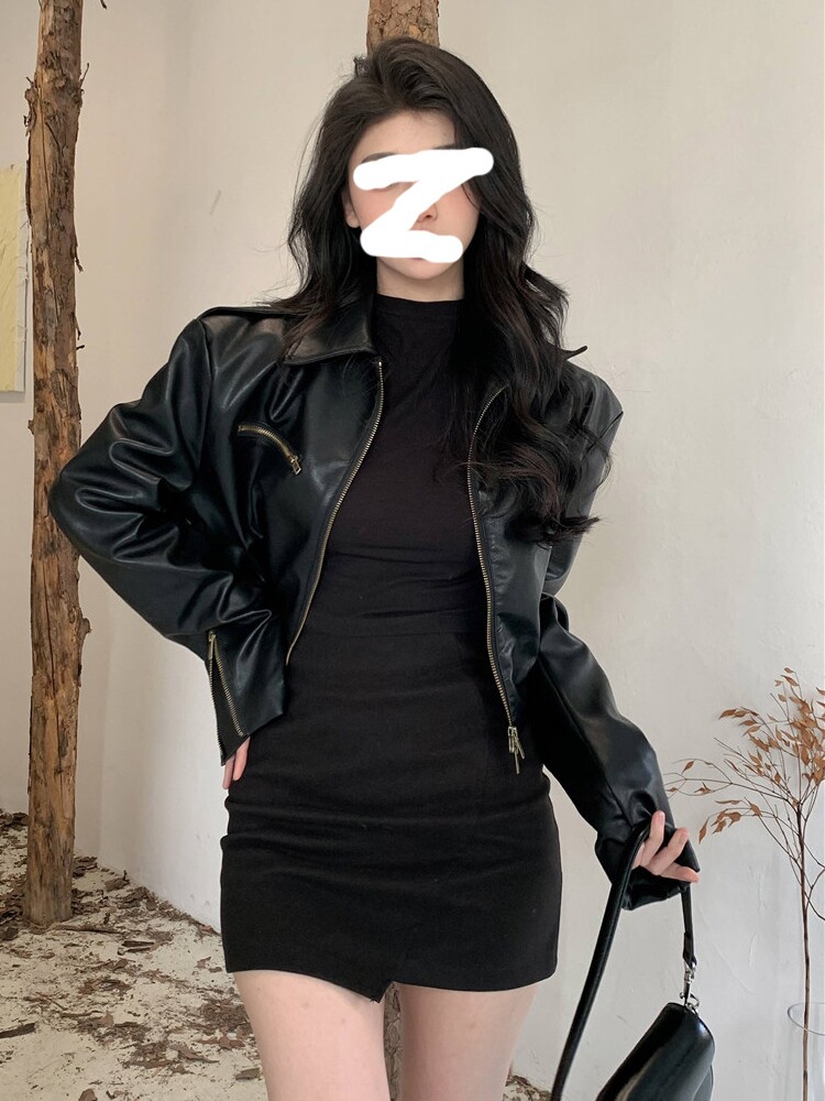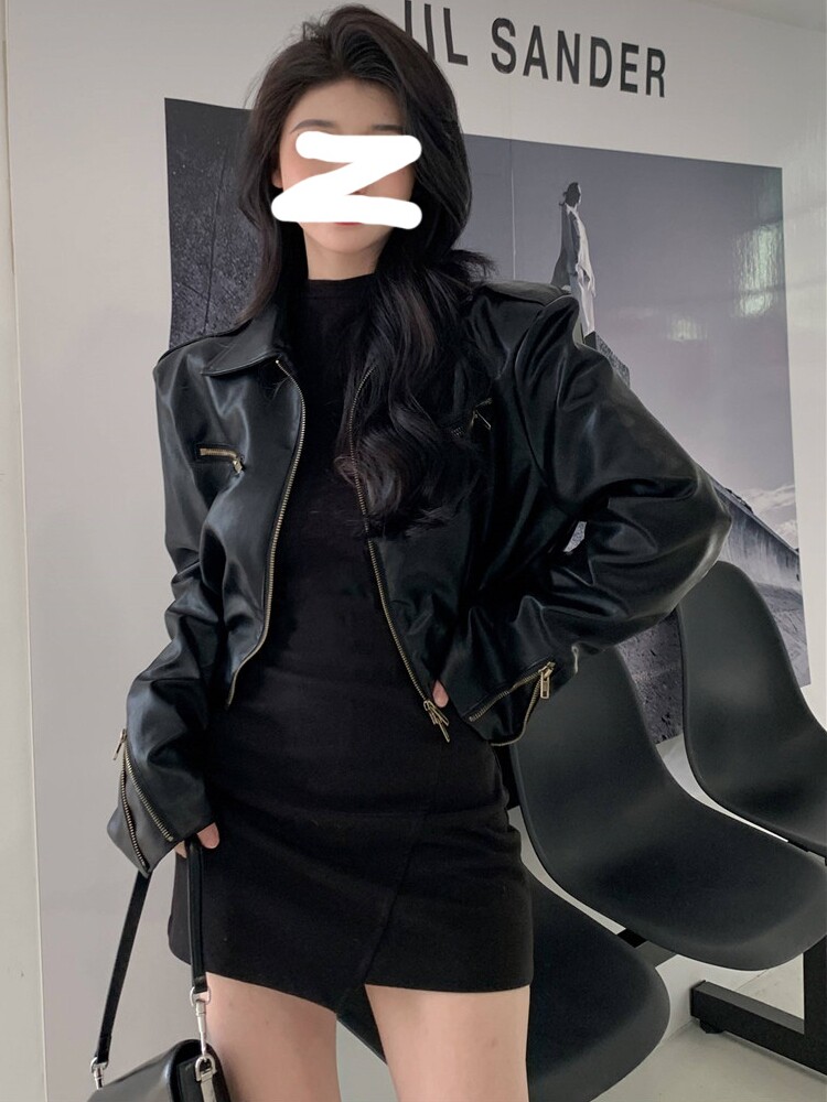 Черная демисезонная сексуальная куртка, изысканный стиль, осенняя, 2025 года