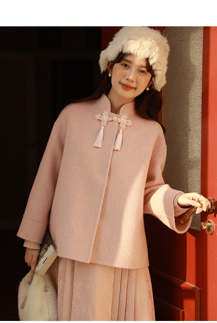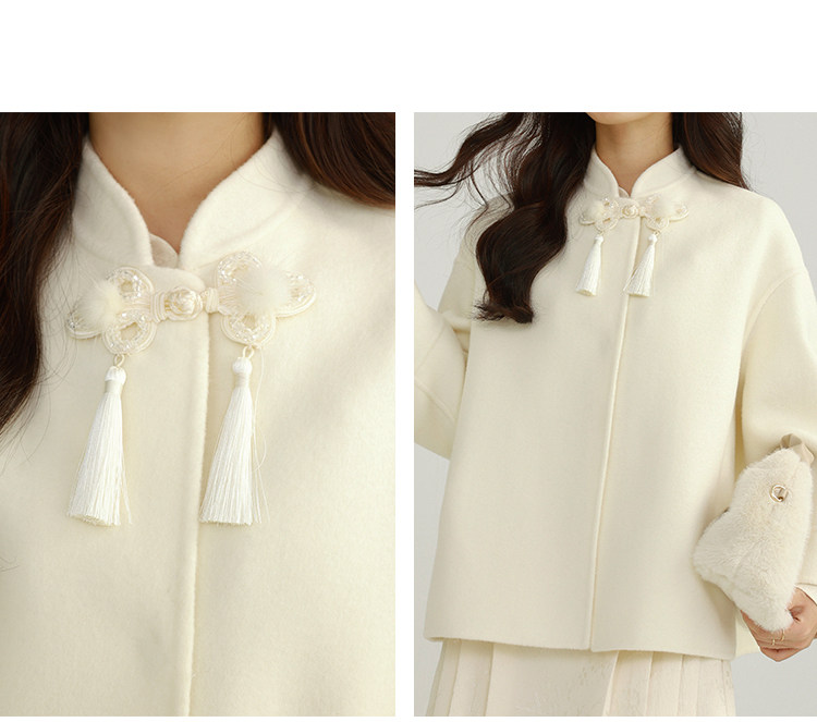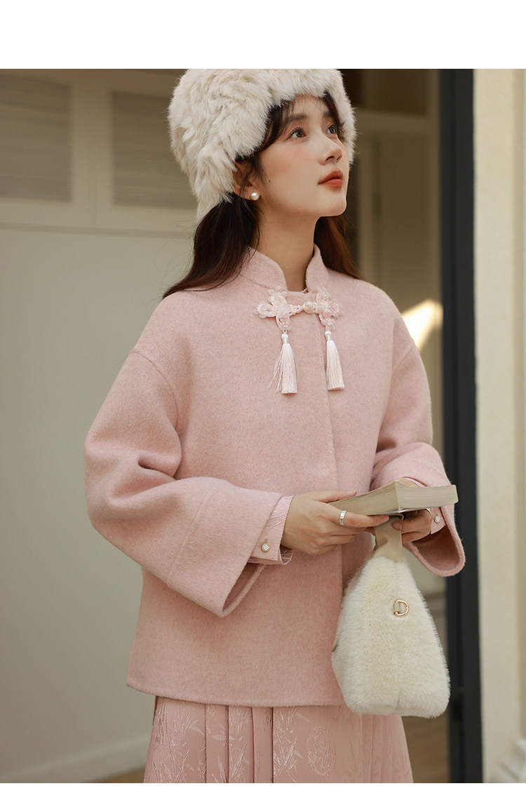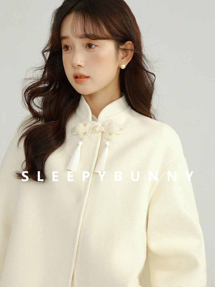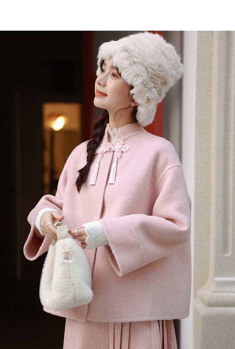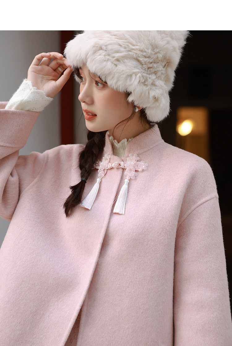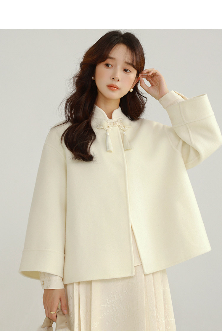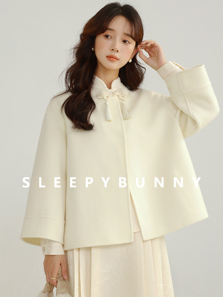 Сонный кролик «Сумерки снега на тысяче гор» Кисточка из бисера Цветочная пуговица Новый шерстяной двусторонний шерстяной плащ в китайском стиле Женский плащ, закрывающий телесную короткую куртку