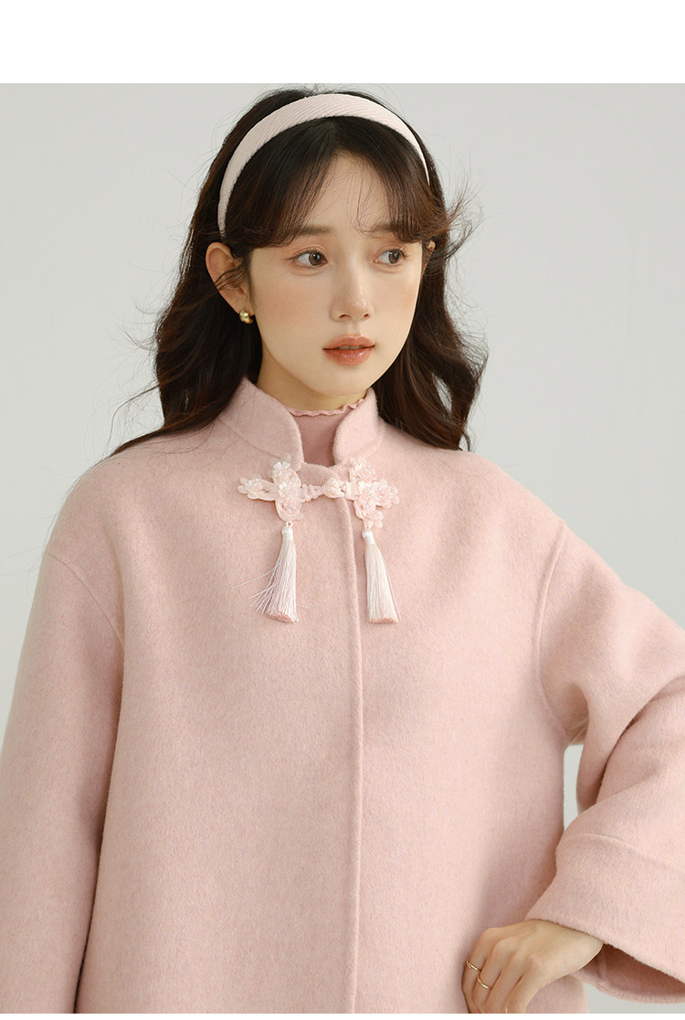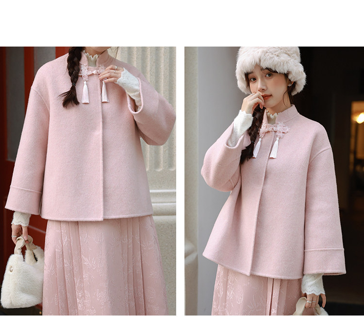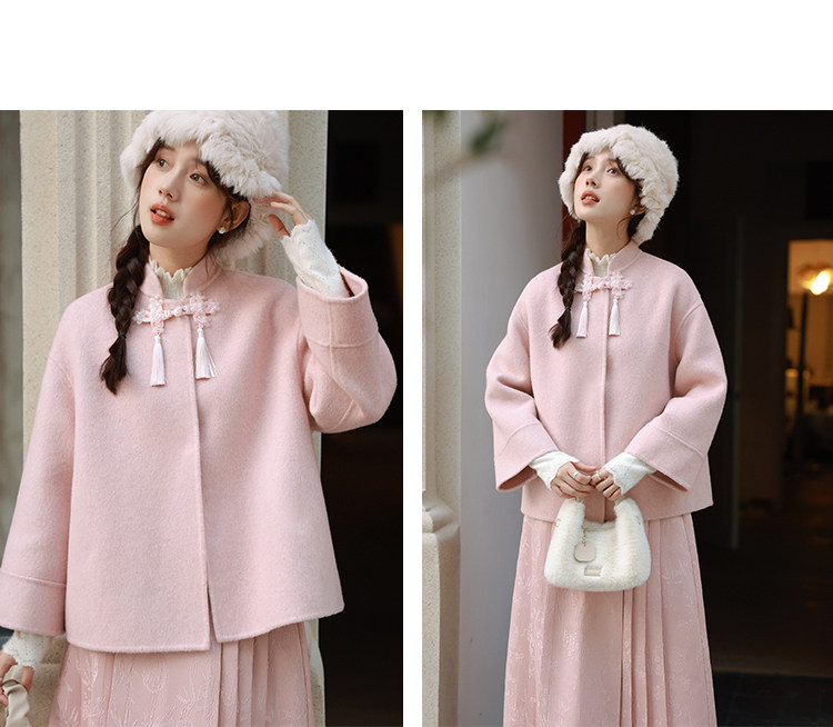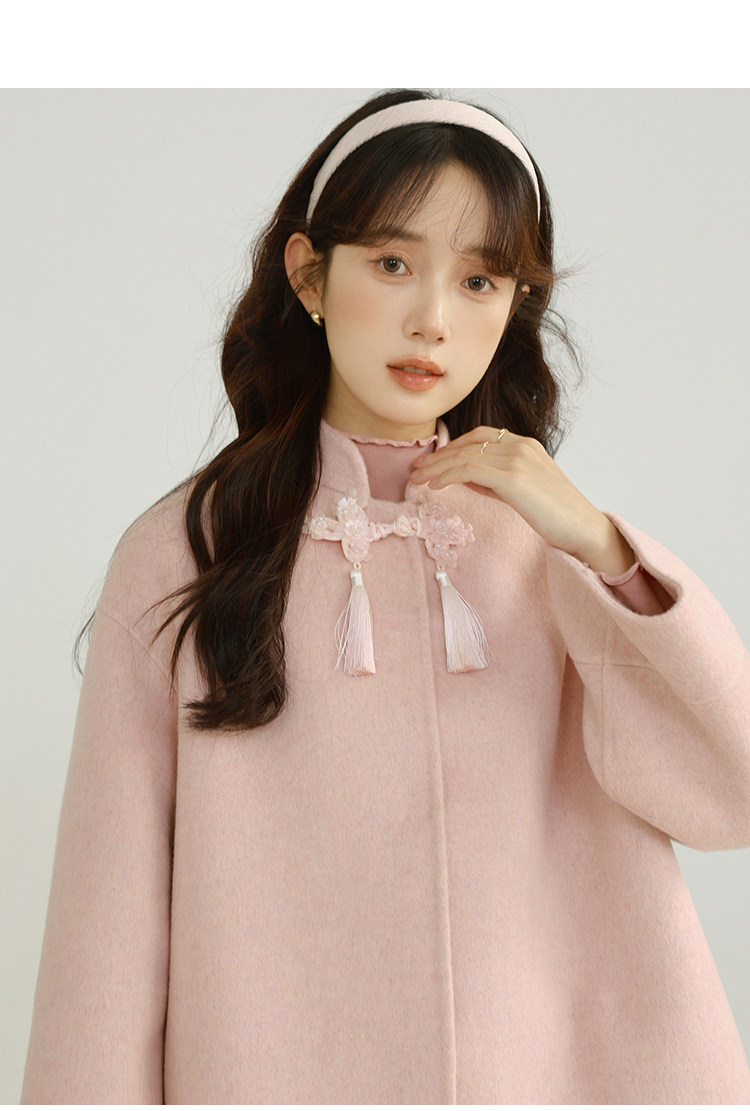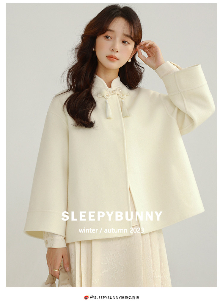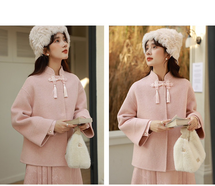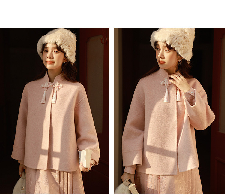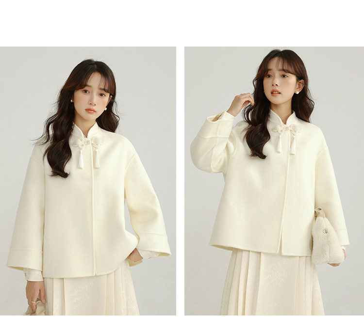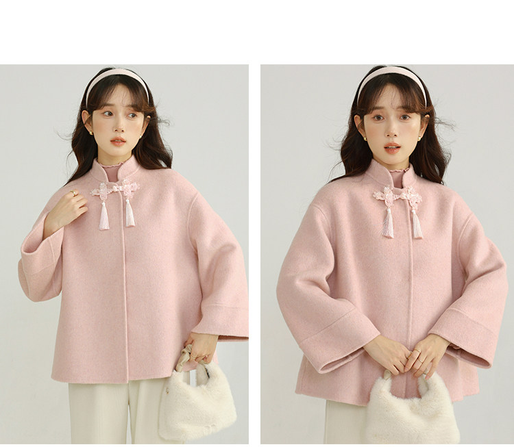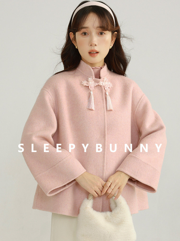 Сонный кролик «Сумерки снега на тысяче гор» Кисточка из бисера Цветочная пуговица Новый шерстяной двусторонний шерстяной плащ в китайском стиле Женский плащ, закрывающий телесную короткую куртку