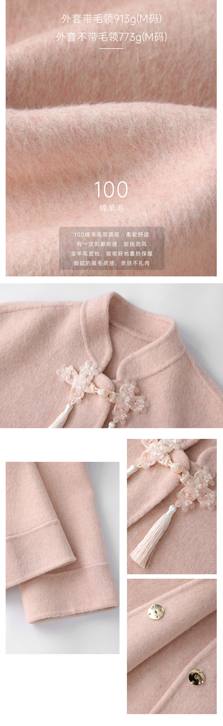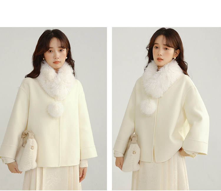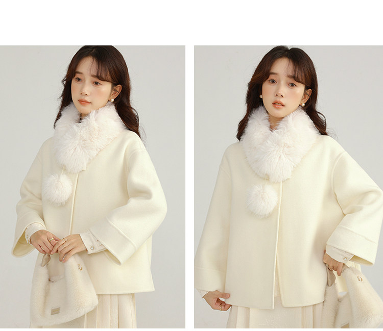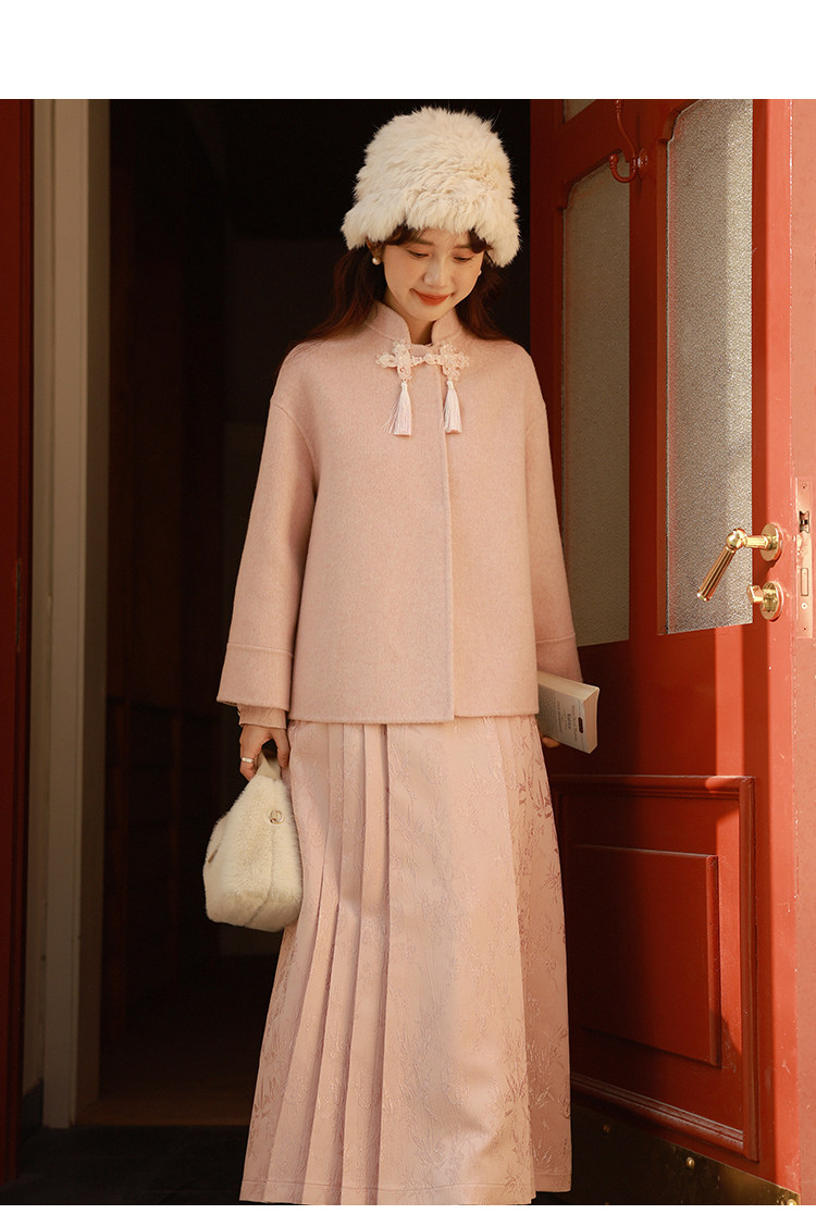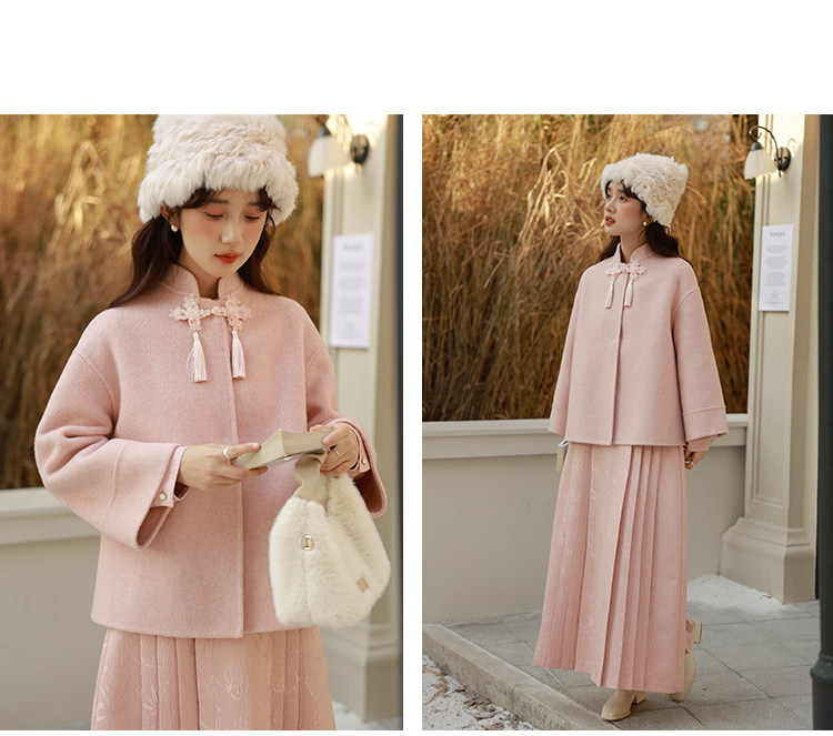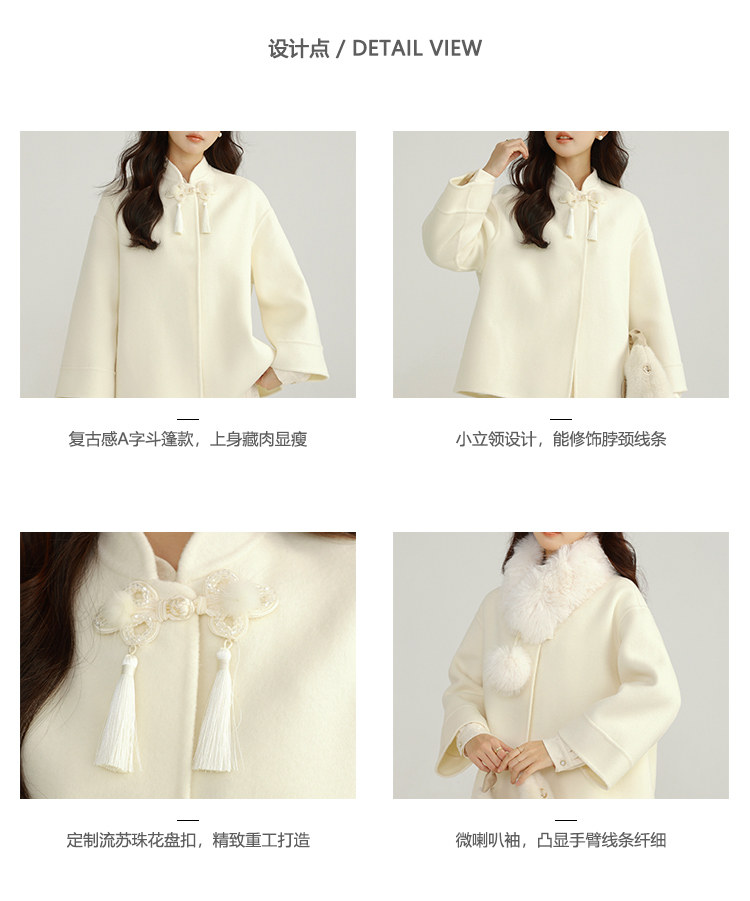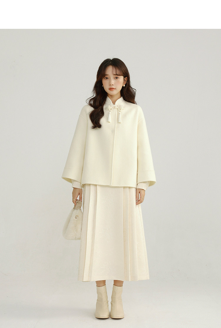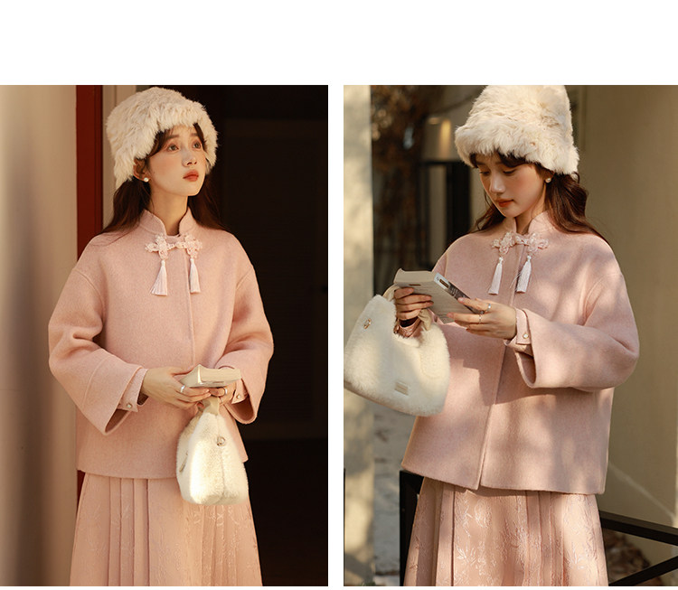 Сонный кролик «Сумерки снега на тысяче гор» Кисточка из бисера Цветочная пуговица Новый шерстяной двусторонний шерстяной плащ в китайском стиле Женский плащ, закрывающий телесную короткую куртку