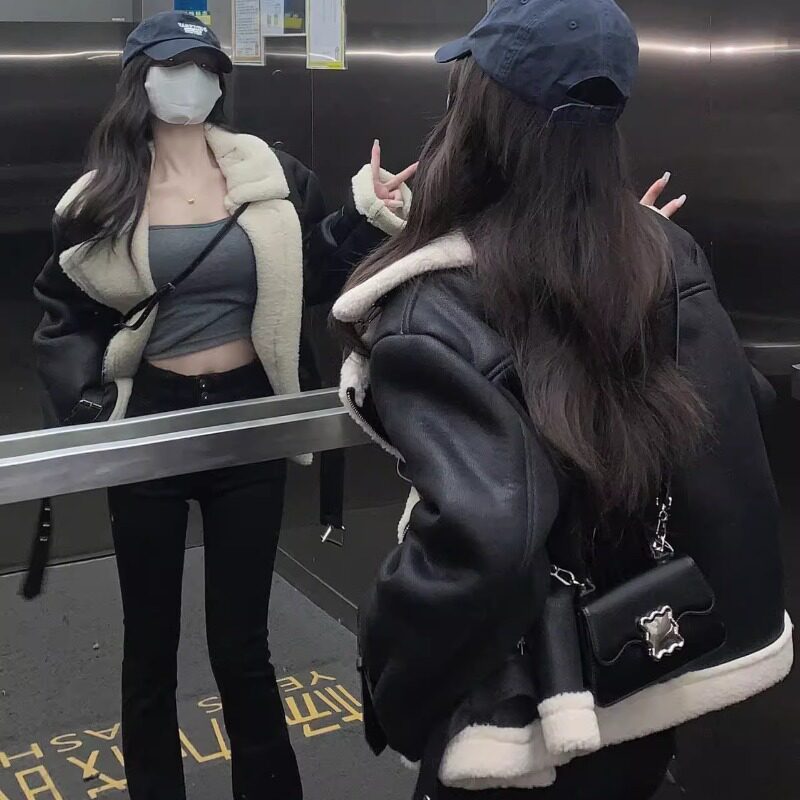Черная бархатная утепленная короткая куртка, подходит для подростков