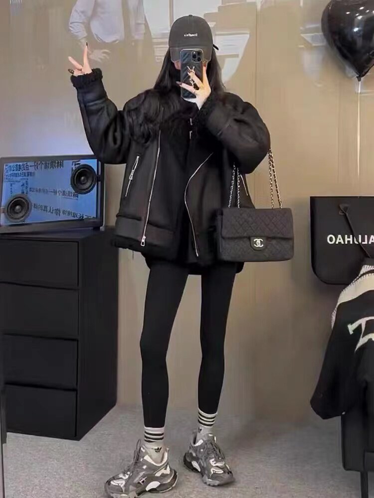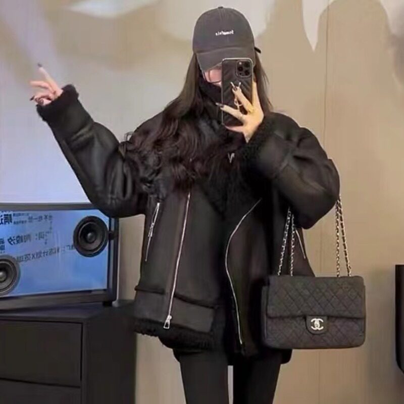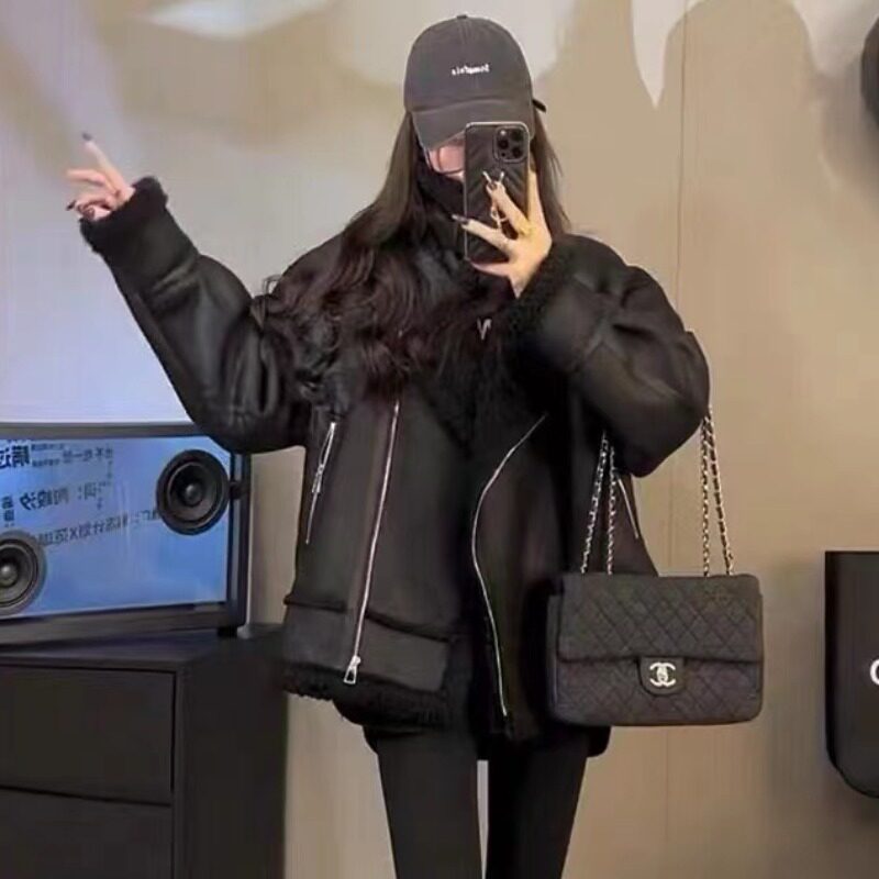 Мех 2024 Новый ягненка с волосатым наружным кошельком женский осенний и зимний бархатный локомотивный
