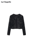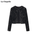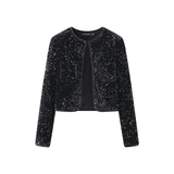 Дизайнерские черные бархатные наплечники с круглым воротником, кардиган, куртка, тренд сезона