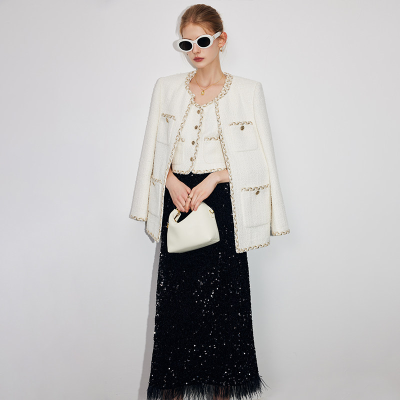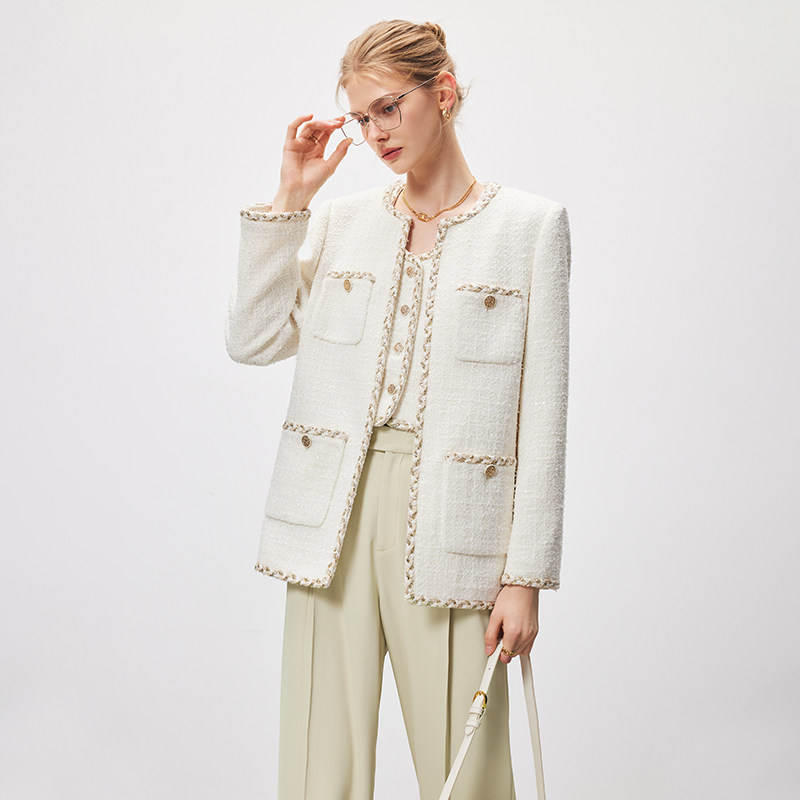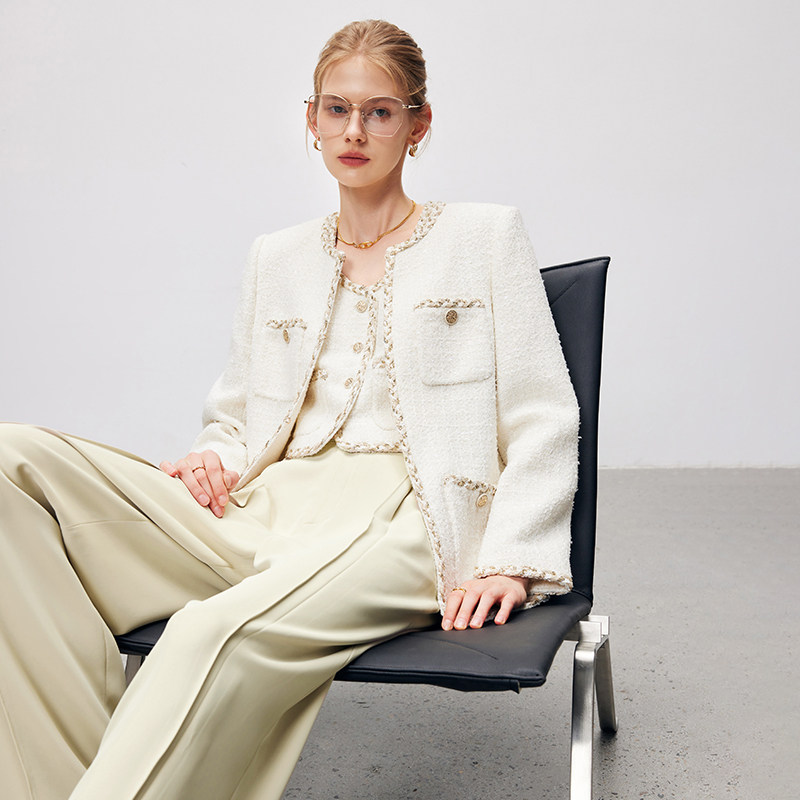 法曼萱 Модная белая осенняя куртка, в стиле Шанель, французский стиль