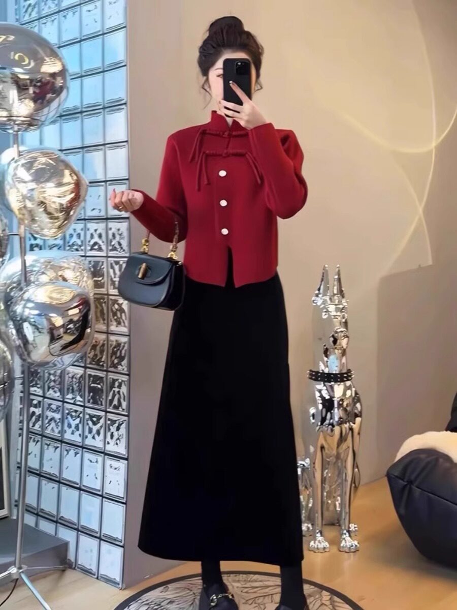 Ретро красная куртка, кардиган, свитер, китайский стиль, в западном стиле