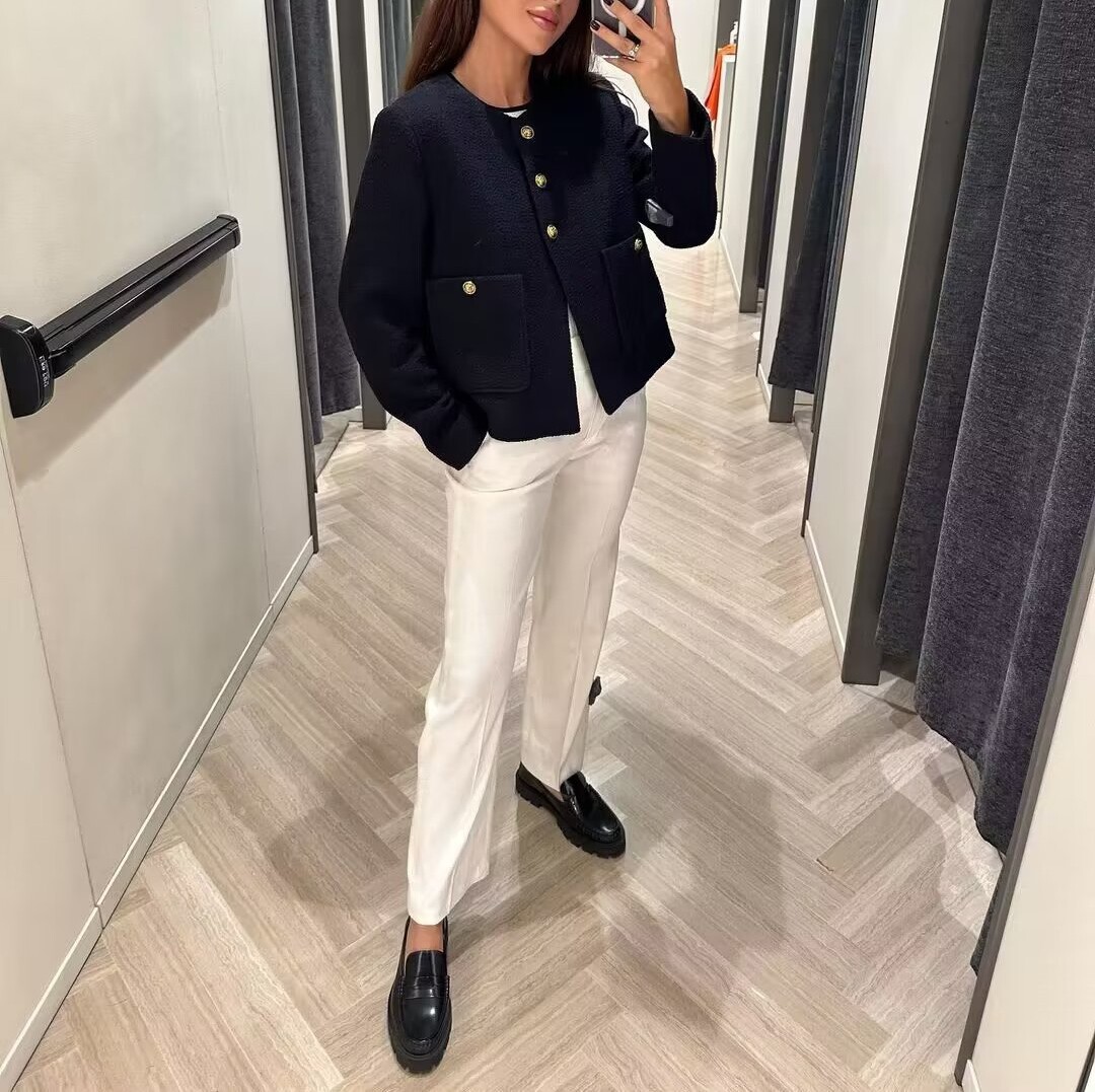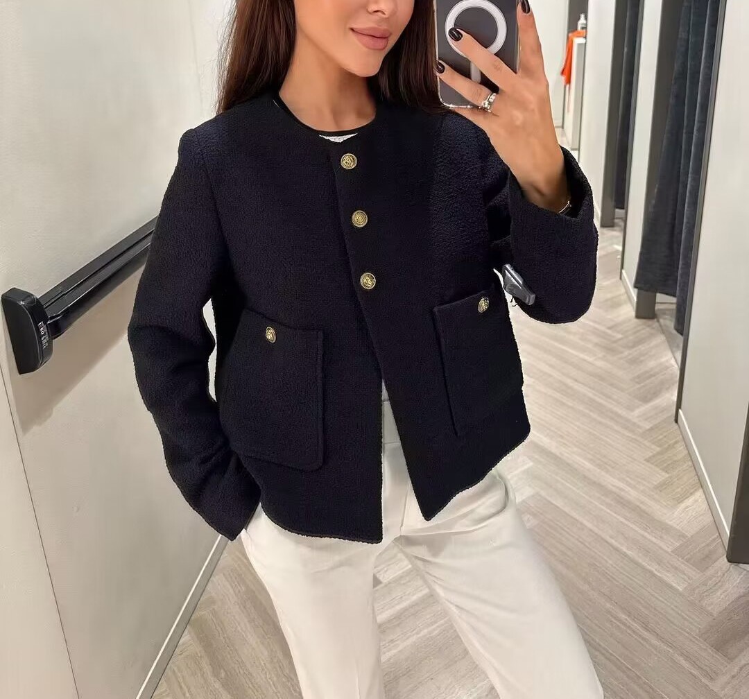 Золотой лонгслив для отдыха с круглым воротником, короткая куртка, свободный крой, в стиле Шанель