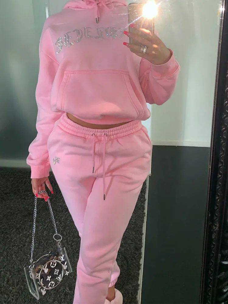 Женский комплект из двух предметов с высокой талией, зимние бархатные толстовки 2024