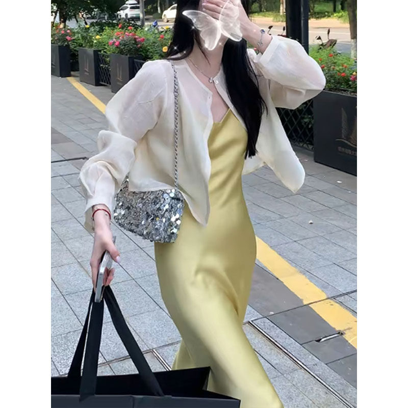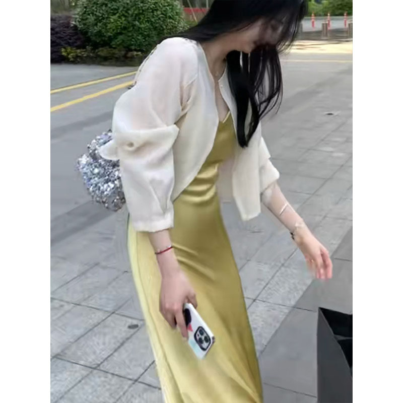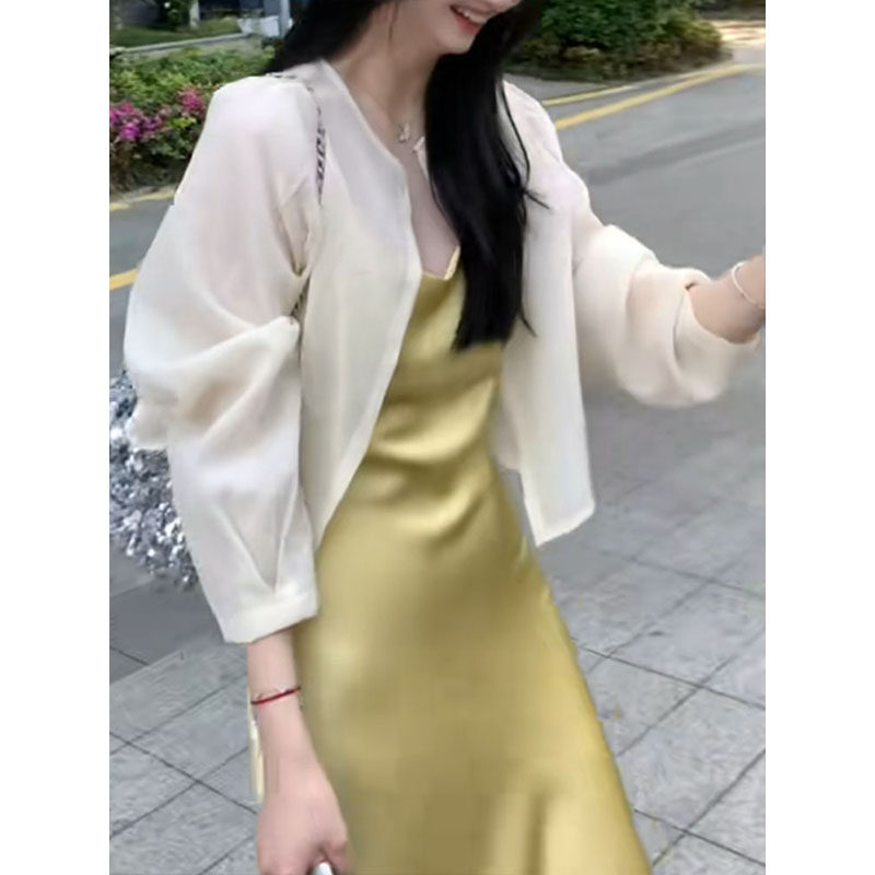 Летний кардиган, платье-комбинация, шифоновый жилет, куртка, французский стиль