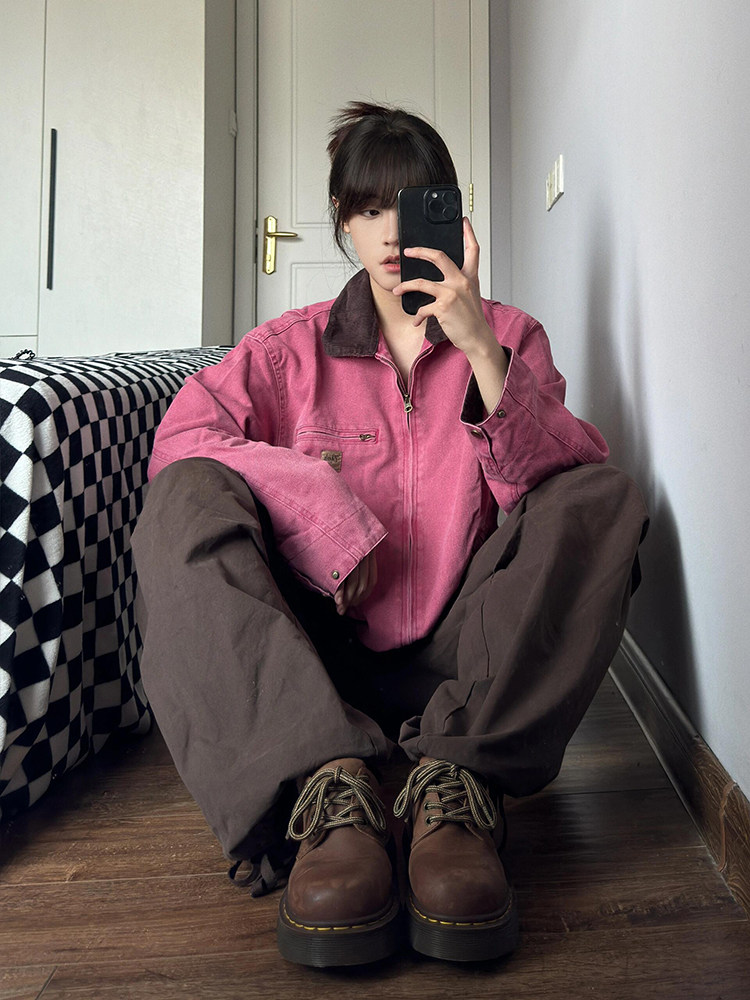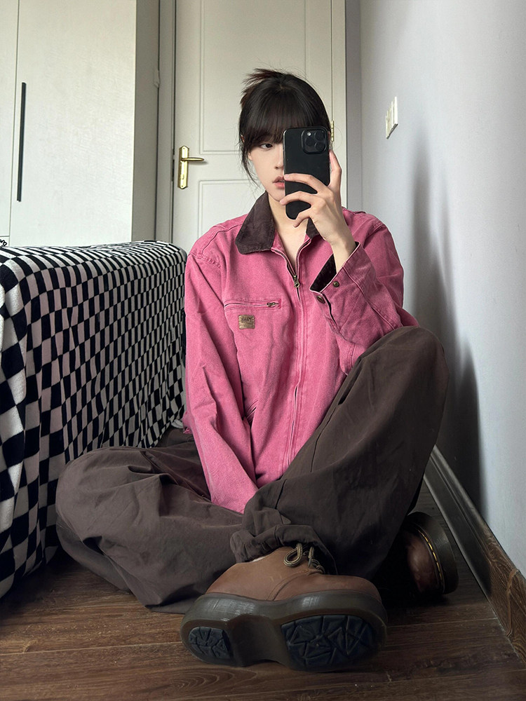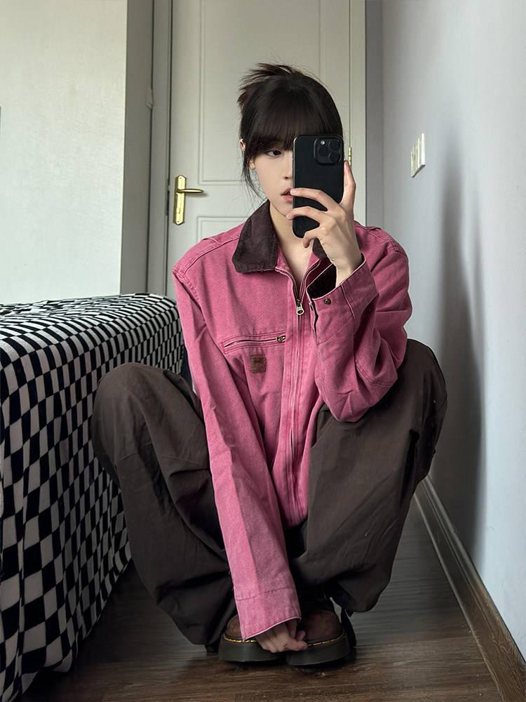 Ретро джинсовая осенняя розовая дизайнерская куртка, большой размер, оверсайз, тренд сезона