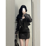 Короткая черная осенняя небольшая полиуретановая куртка, подходит для подростков