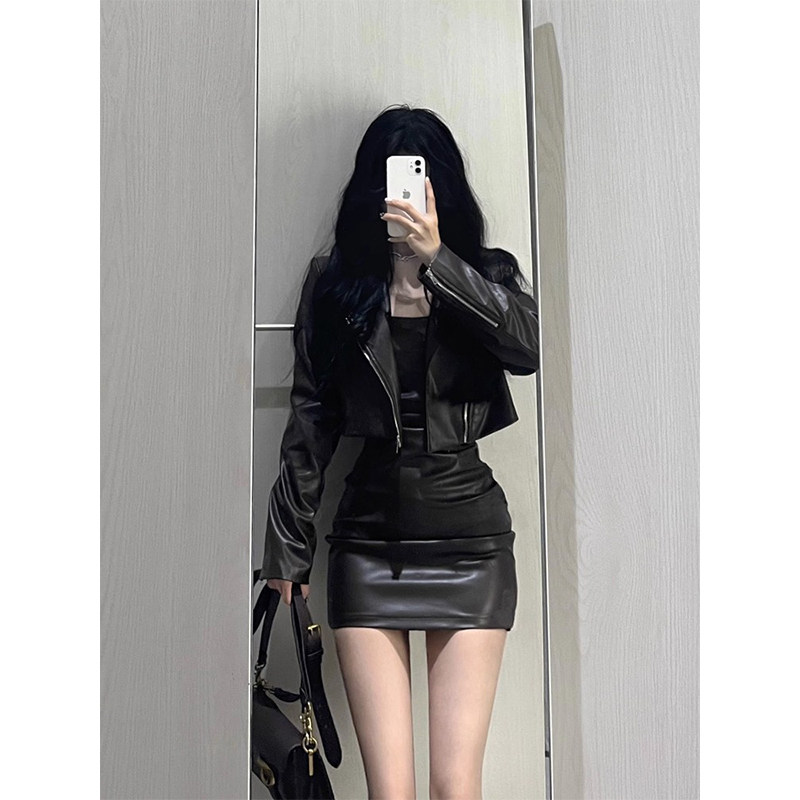 | Цвет: | Черная куртка, Черная высококачественная куртка, Платье на подтяжках [версия высокого качества], Кожаная куртка + платье [версия высокого качества] |
