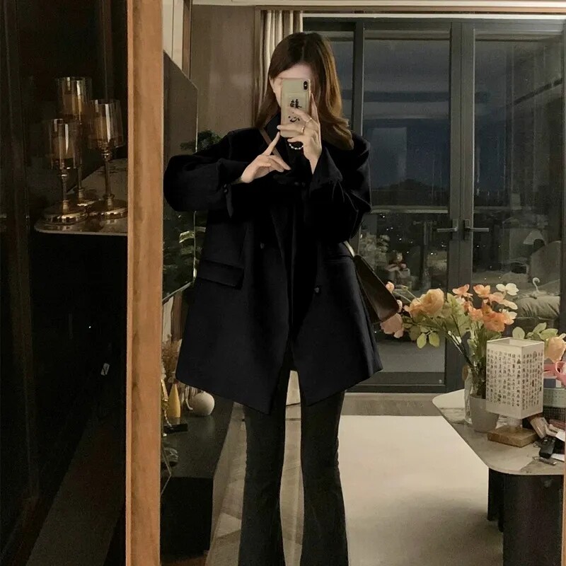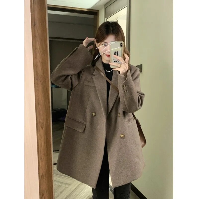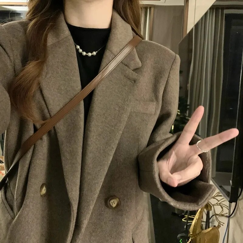 Костюм, шерстяное пальто, осенняя ретро куртка, большой размер, подходит для подростков, свободный крой, оверсайз, увеличенная толщина