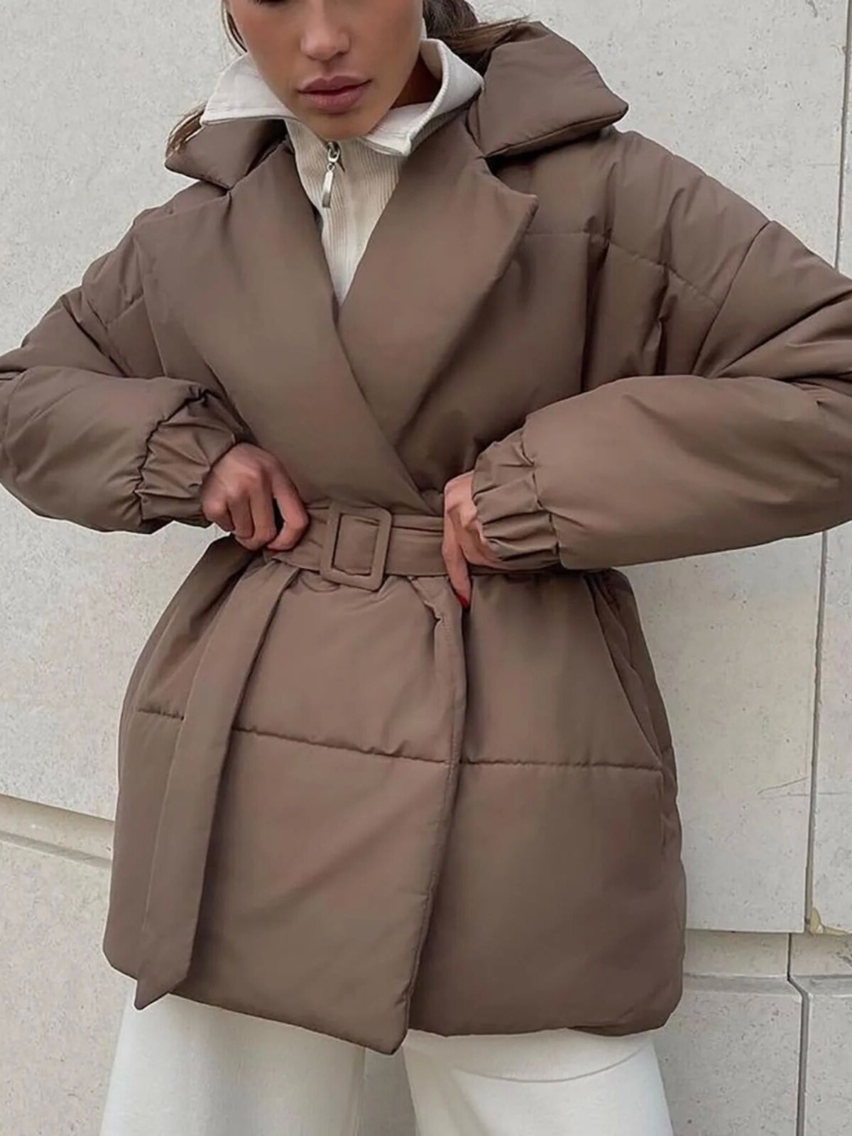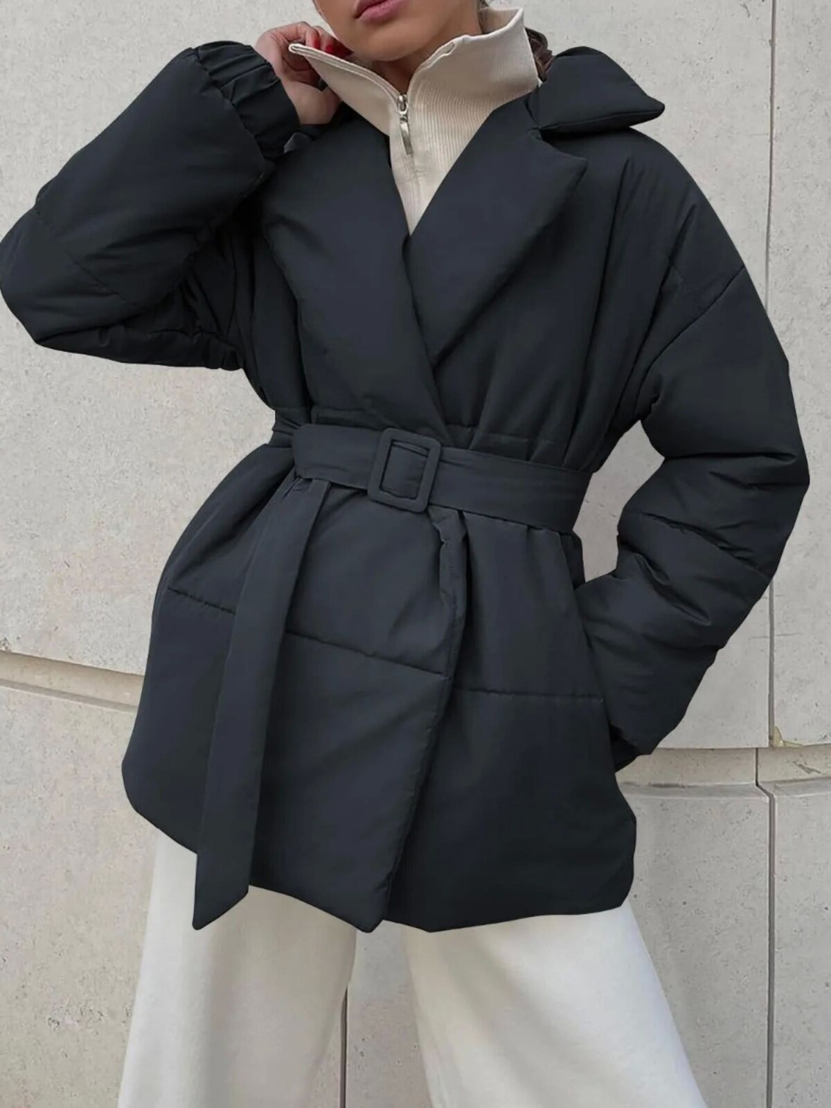 Однотонная повседневная куртка с поясом и лацканами, однотонная повседневная куртка с поясом и лацканами для женщин