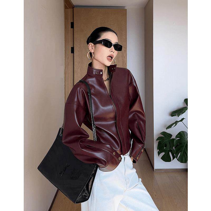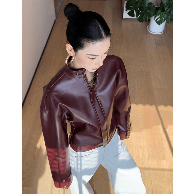 Простая и красивая, легкая и зрелая кожаная куртка.