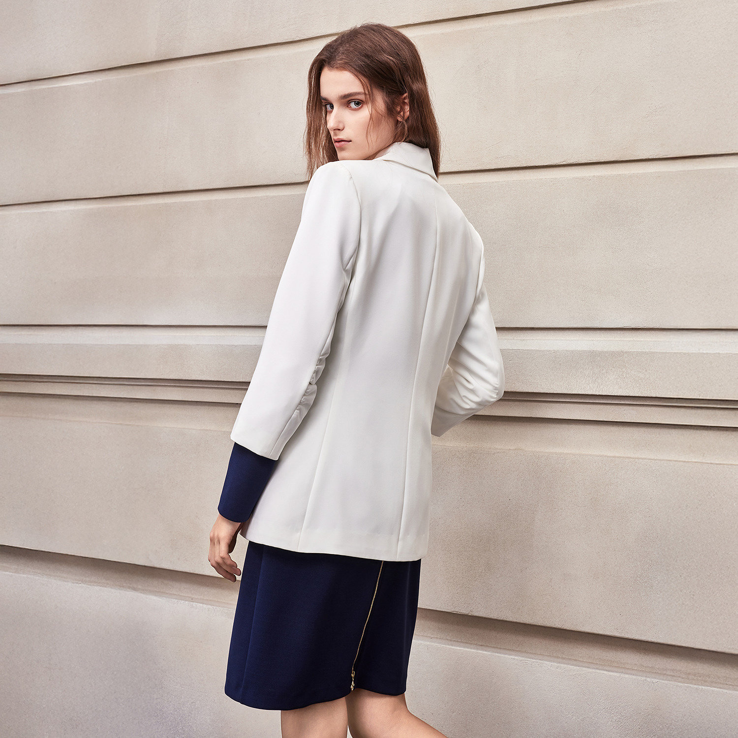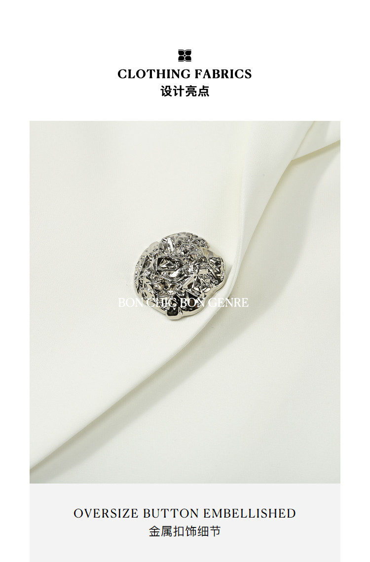 Демисезонный модный дизайнерский металлический костюм, белая куртка, тренд сезона