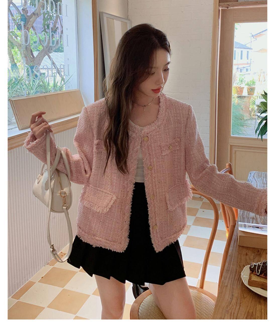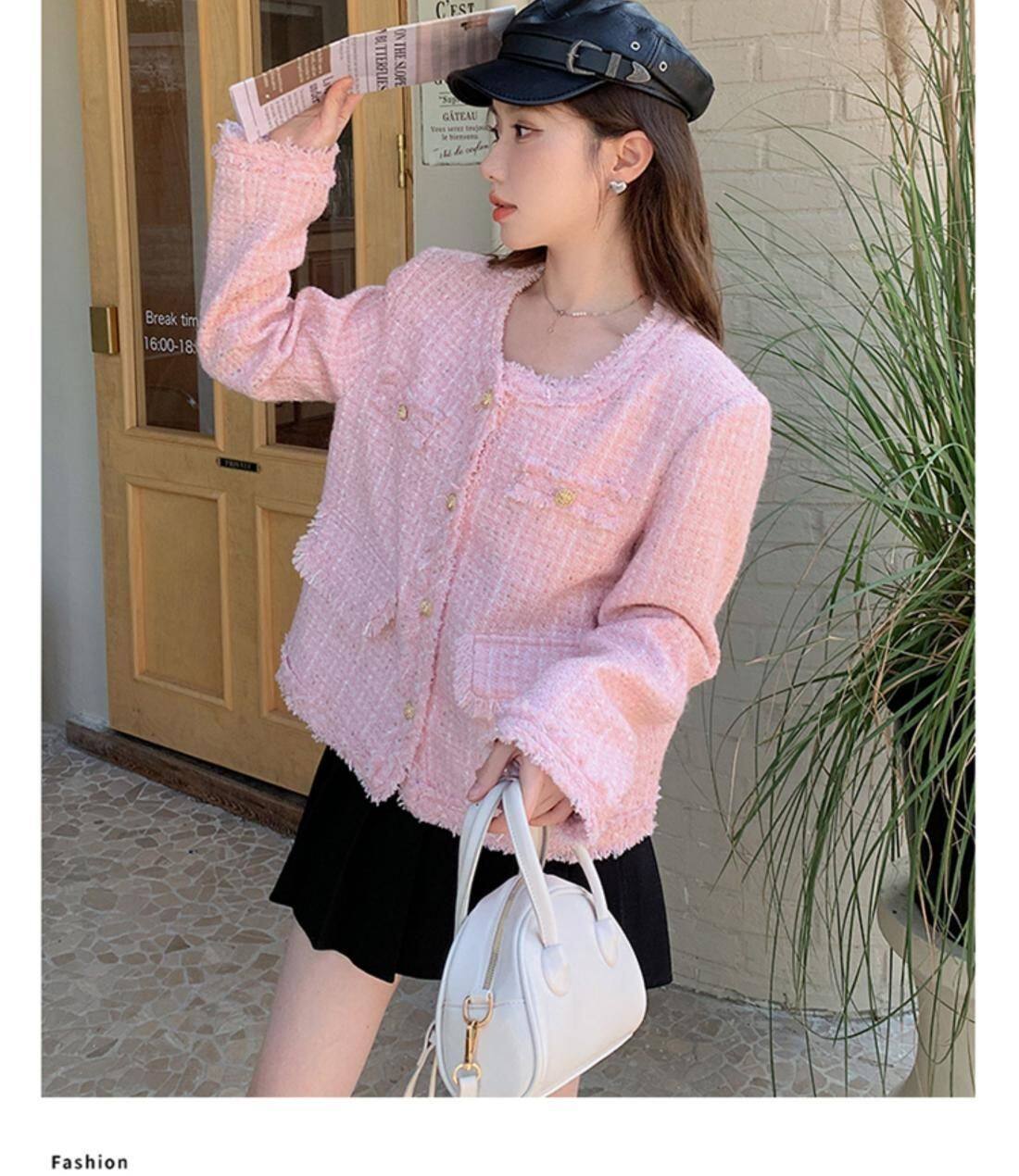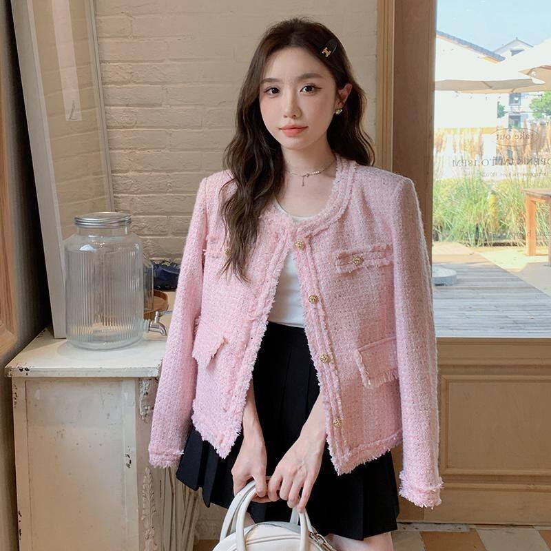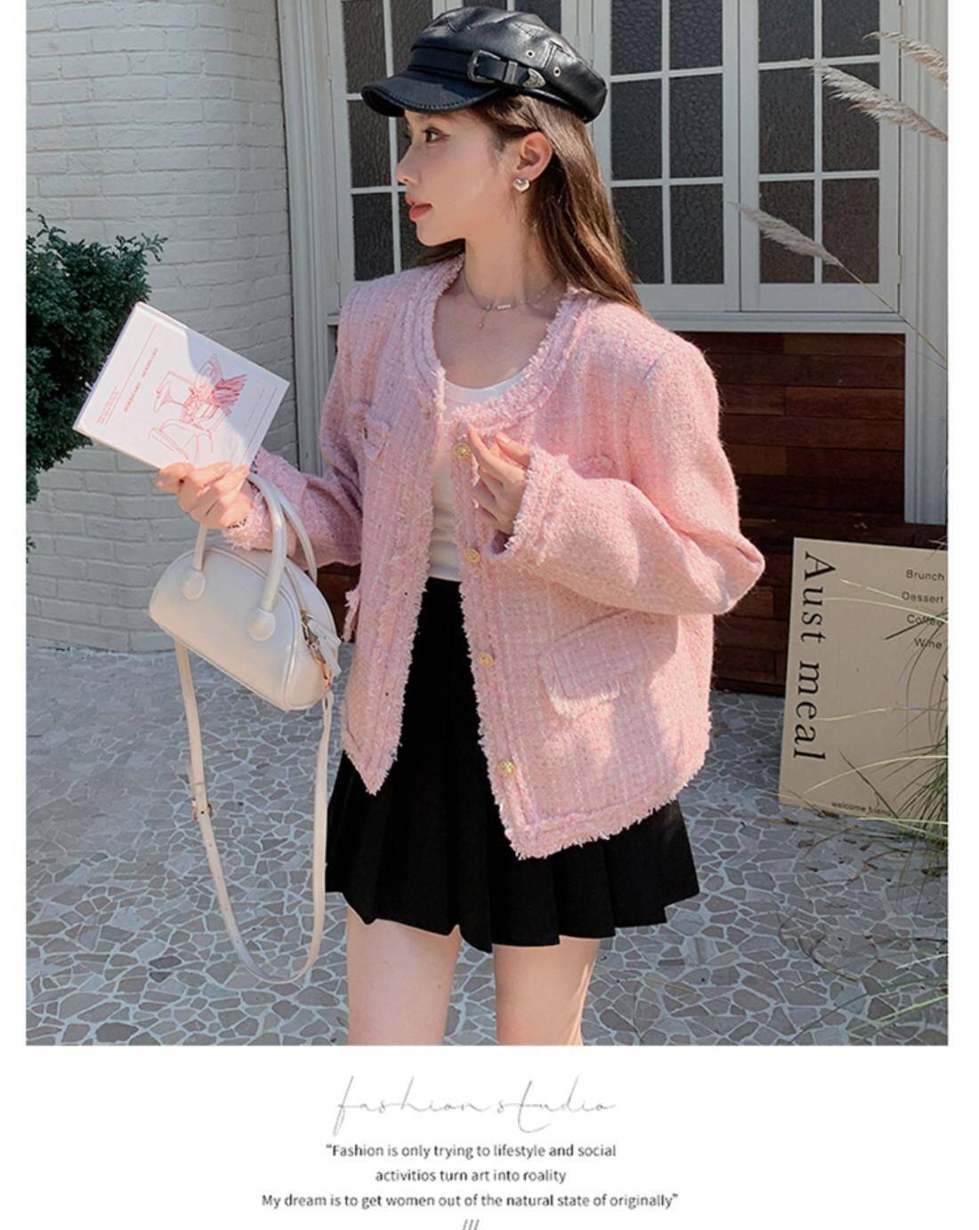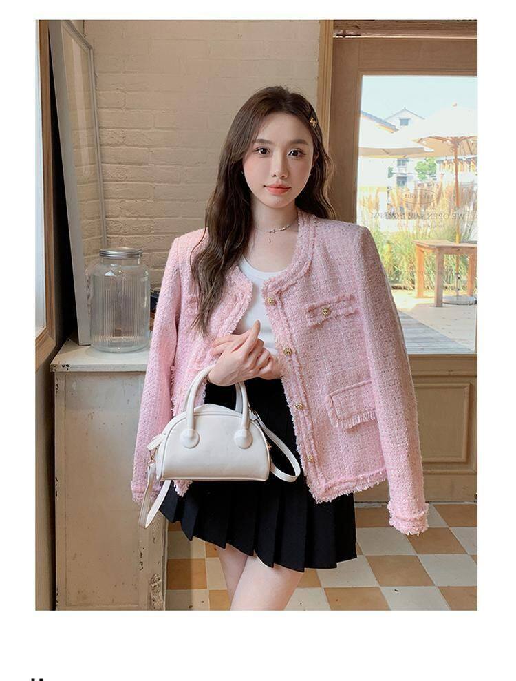 Розовая осенняя модная куртка, в стиле Шанель, французский стиль, подходит для подростков