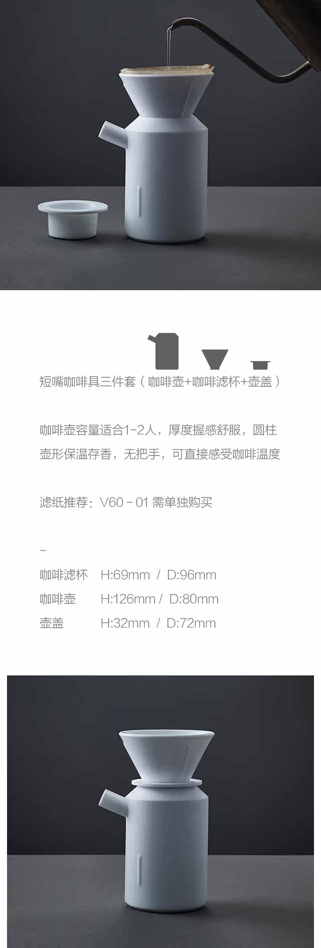 Короткая рука -Панк -кофейный снаряжение (три -набор из белого кофейного фильтра |
