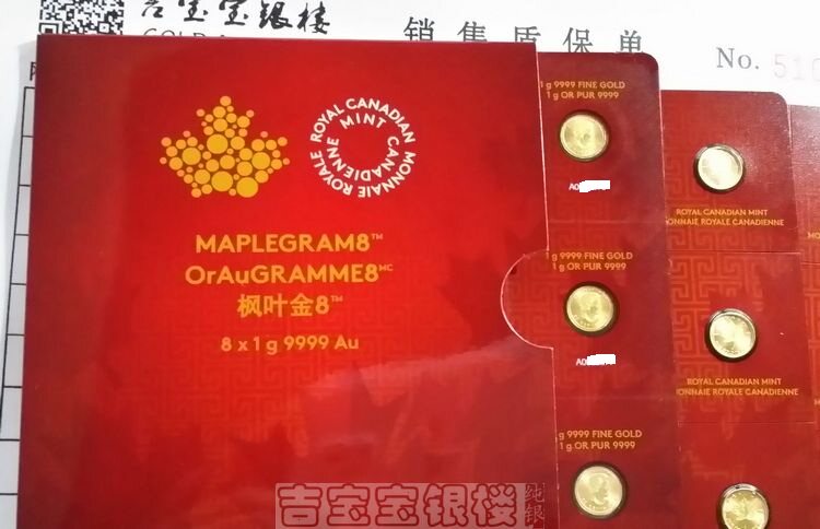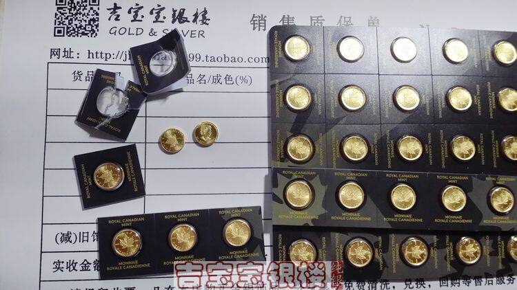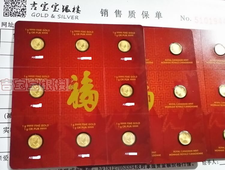 Каждый грамм золотых монет составляет .9999 чистого золота.Каждое оригинальное доказательство запечатывания продукта перечислено в его весе и чистоте.