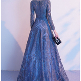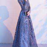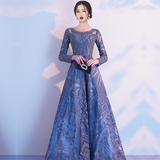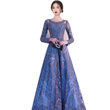 Синее элегантное длинное элитное вечернее платье