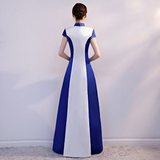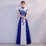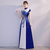 Сине-белое ципао, вечернее платье, костюм, облегающий крой, китайский стиль, для подиума