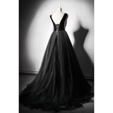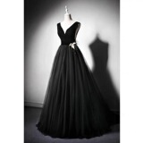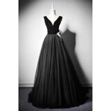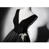 Черное бархатное вечернее платье, юбка, V-образный вырез, выпускной вечер, юбка-пачка
