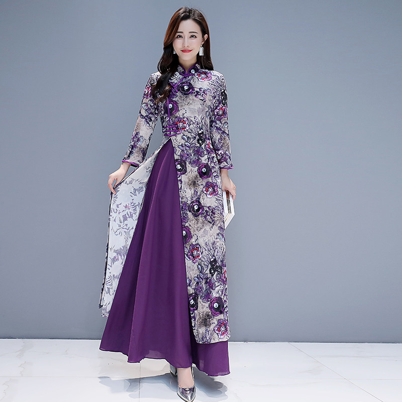 Демисезонное бархатное длинное ципао, элегантное платье для матери, 2024 года, китайский стиль