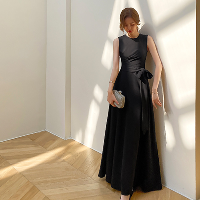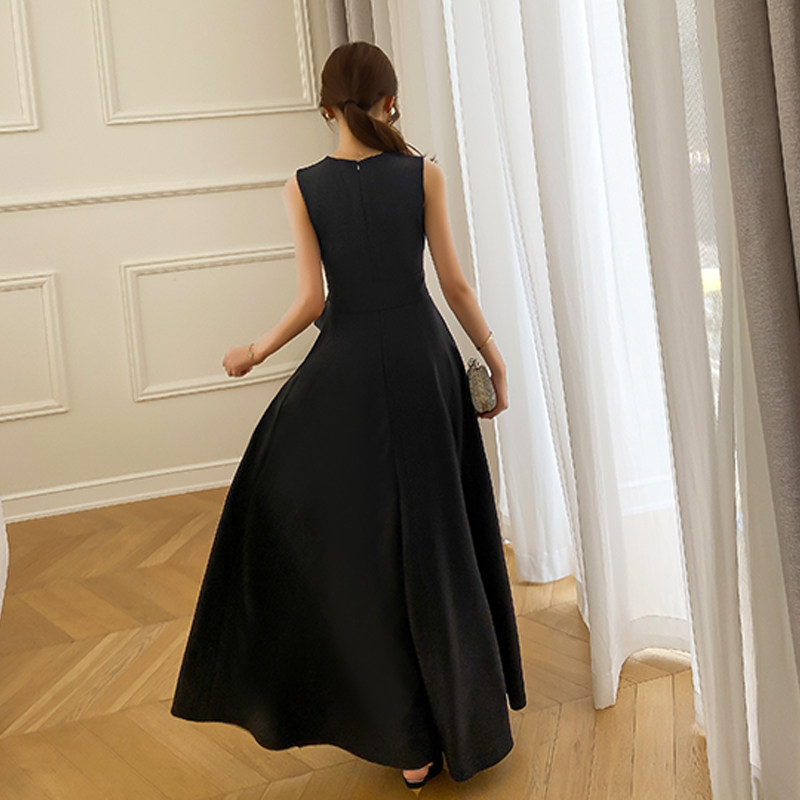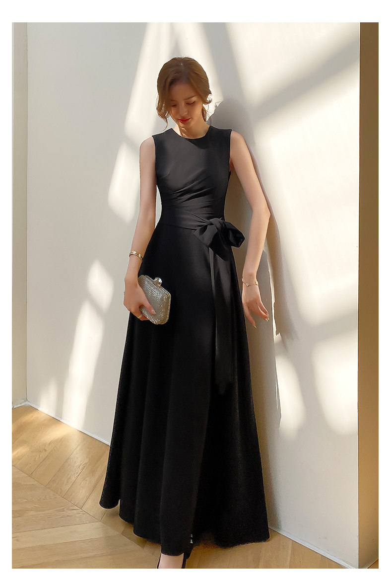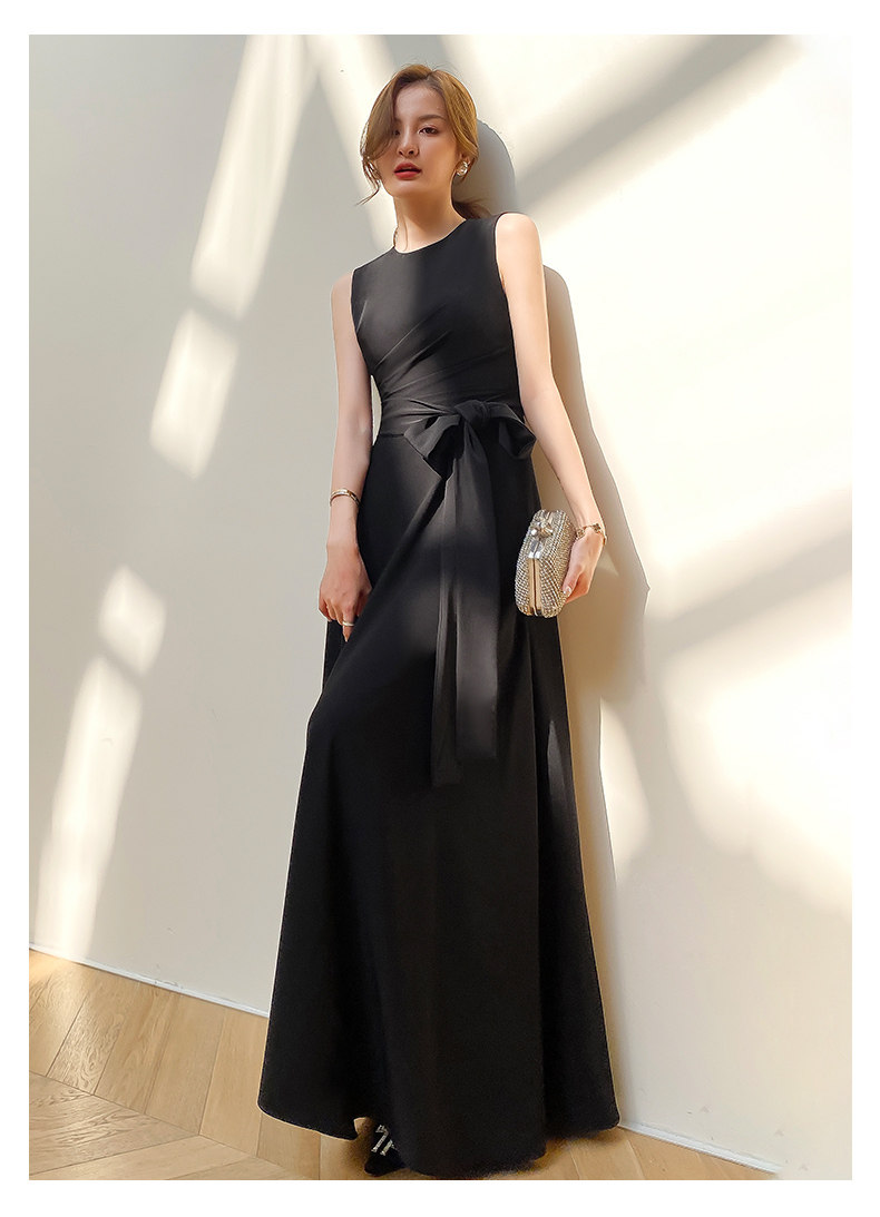 Черное коктейльное банкетное приталенное длинное вечернее платье без рукавов